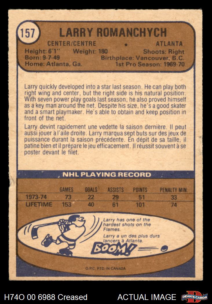1974 O-Pee-Chee NHL #157 Larry Romanchych 3 - VG