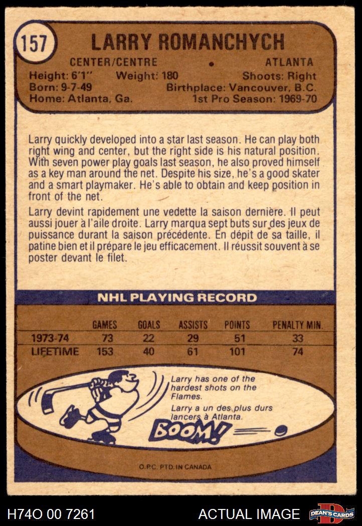 1974 O-Pee-Chee NHL #157 Larry Romanchych Front Thumbnail