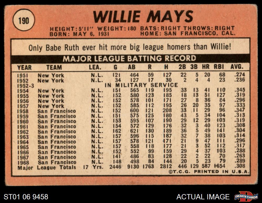 1969 Topps #190 Willie Mays 1.5 - FAIR