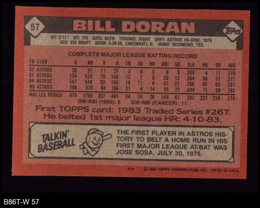 1986 Topps #57 Bill Doran