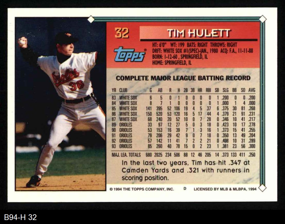 1994 Topps #32 Tim Hulett 8 - NM/MT