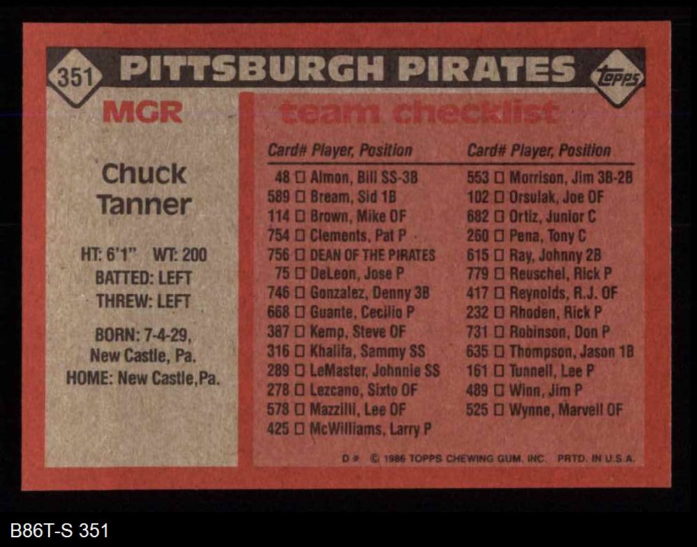 1986 Topps #351 - Chuck Tanner Pirates Team Checklist 8 - NM/MT
