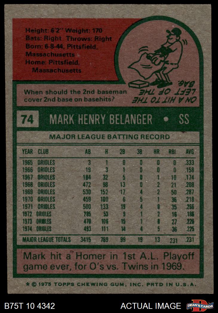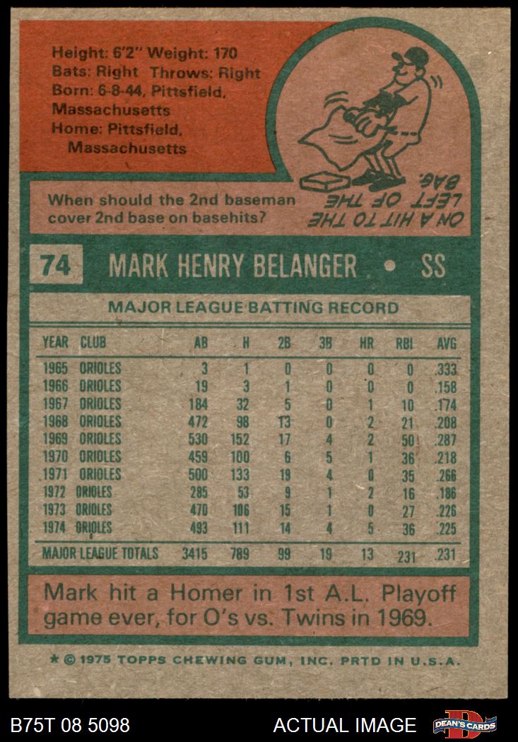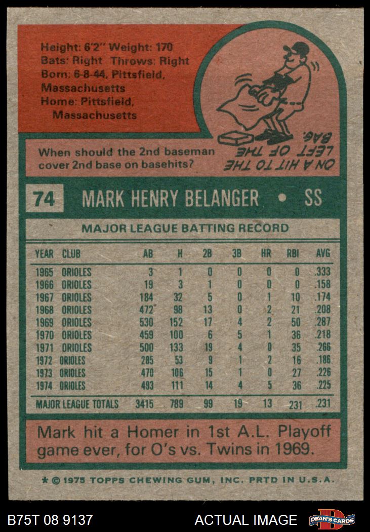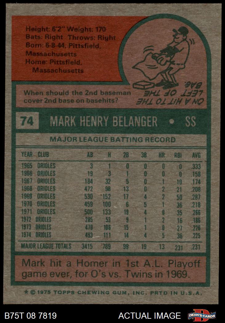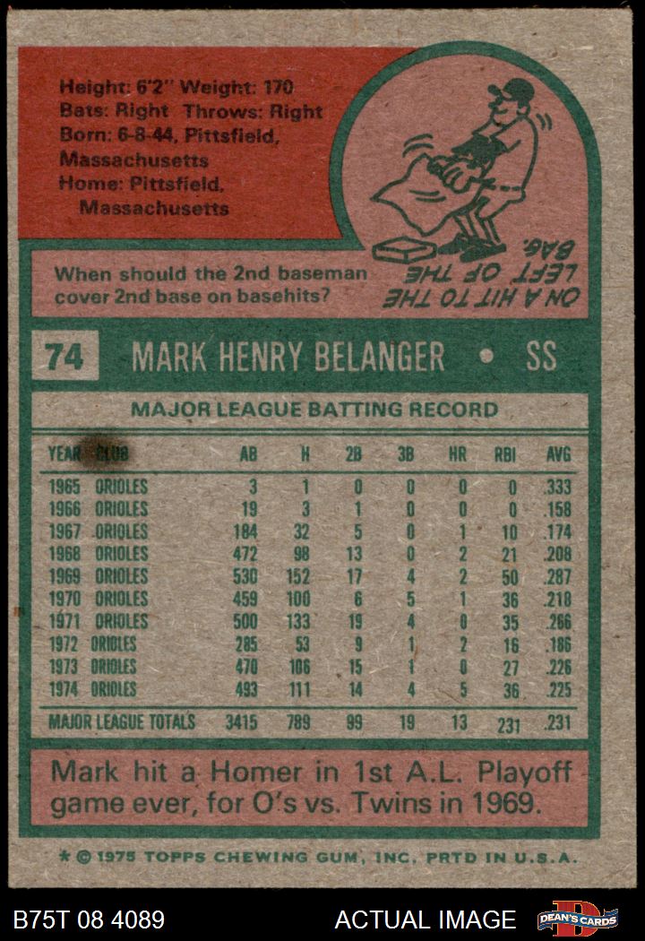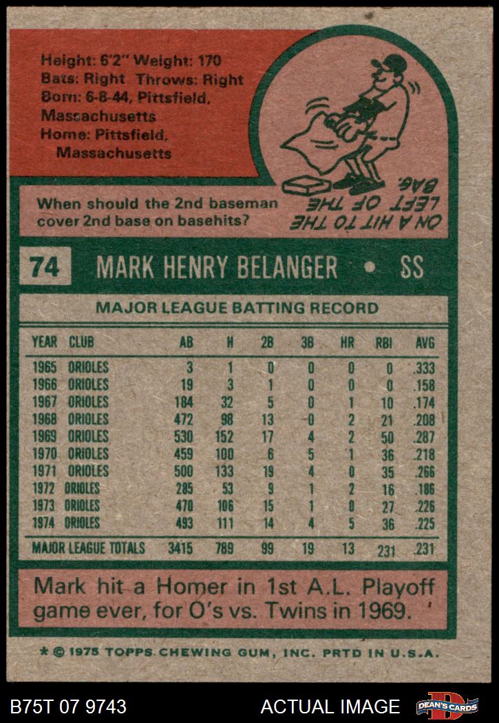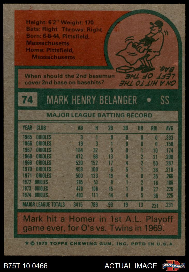 1975 Topps #74 Mark Belanger