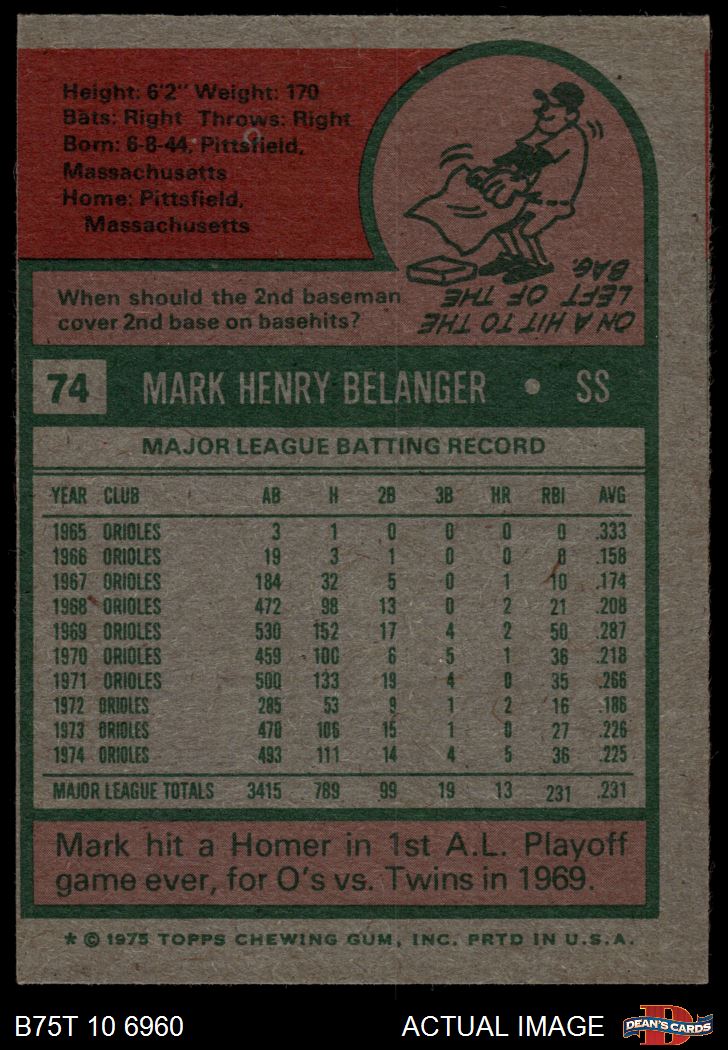 1975 Topps #74 Mark Belanger 4 - VG/EX