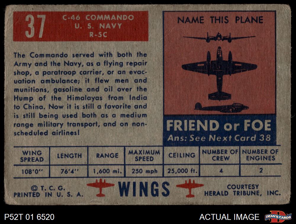 1952 Topps Wings #37 C-46 Commando 2 - GOOD