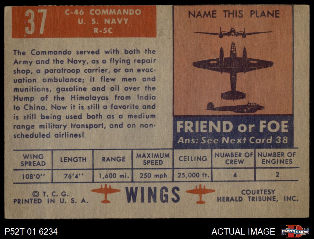 1952 Topps Wings #37 C-46 Commando 5 - EX