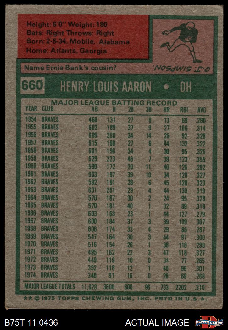 1975 Topps #660 Hank Aaron