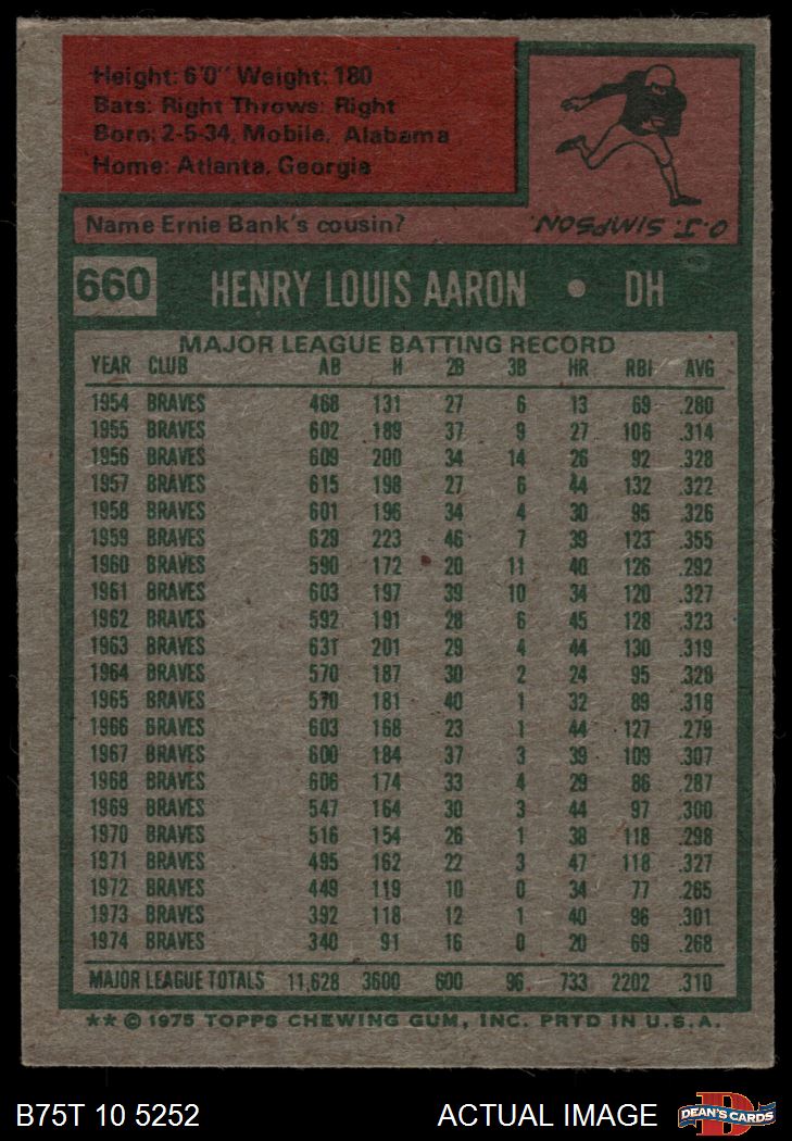 1975 Topps #660 Hank Aaron 4 - VG/EX