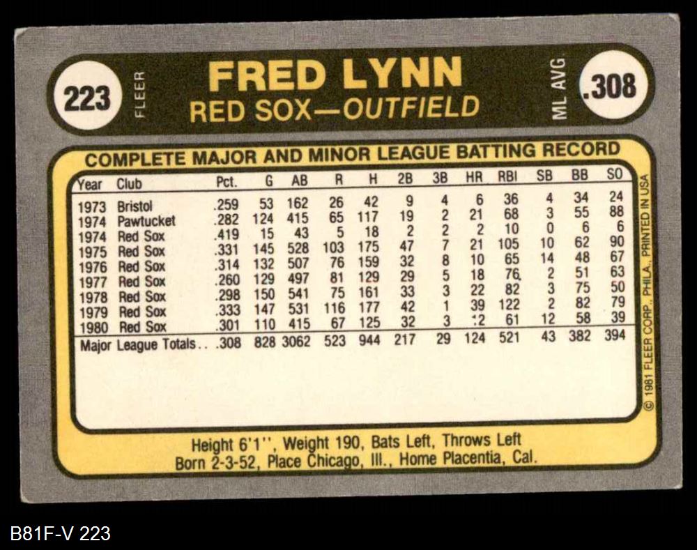 1981 Fleer #223 Fred Lynn 8 - NM/MT