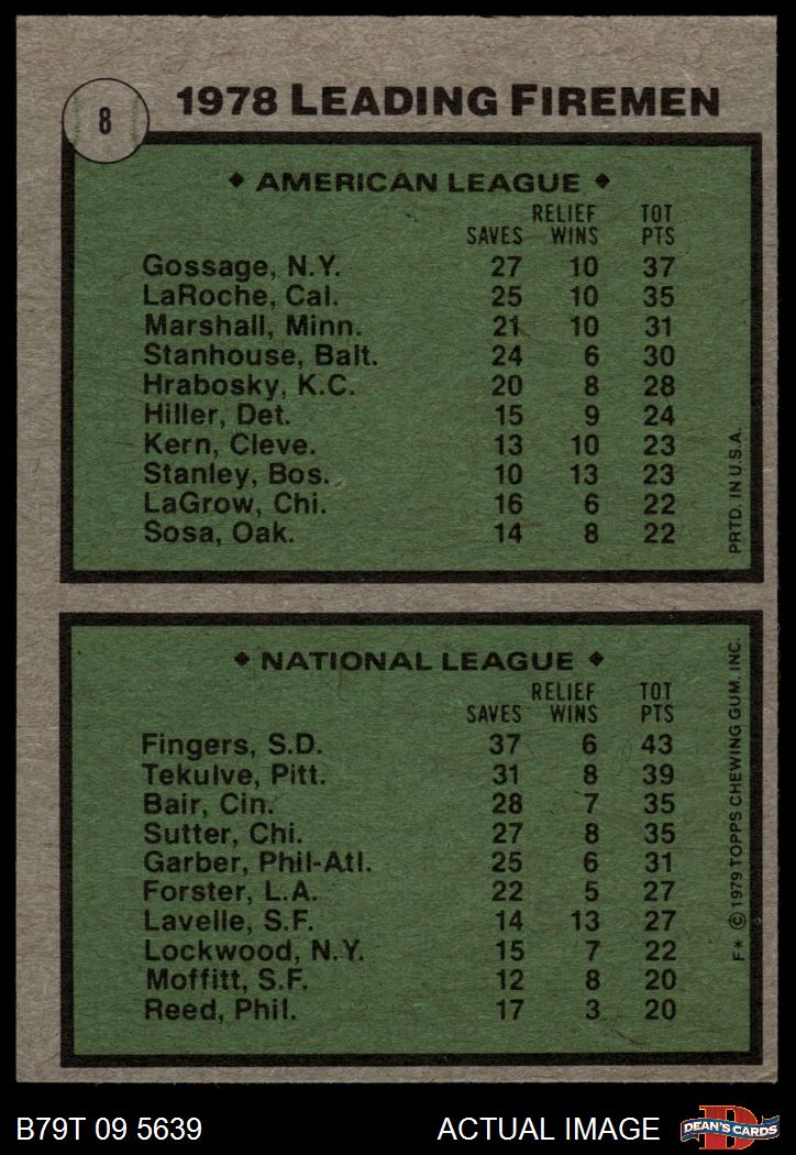 1979 Topps #8 - Rollie Fingers / Goose Gossage Leading Firemen 5 - EX