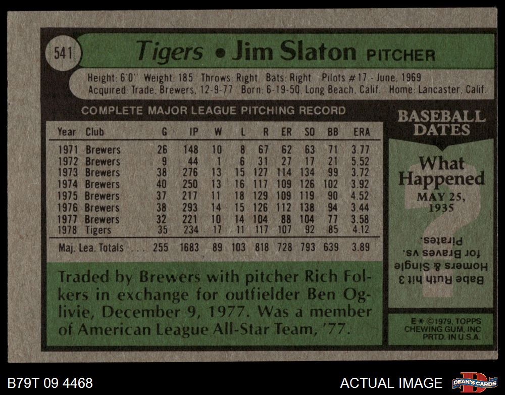 1979 Topps #541 Jim Slaton