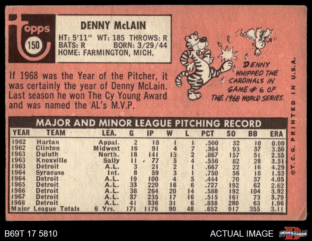 1969 Topps #150 Denny McLain 1.5 - FAIR