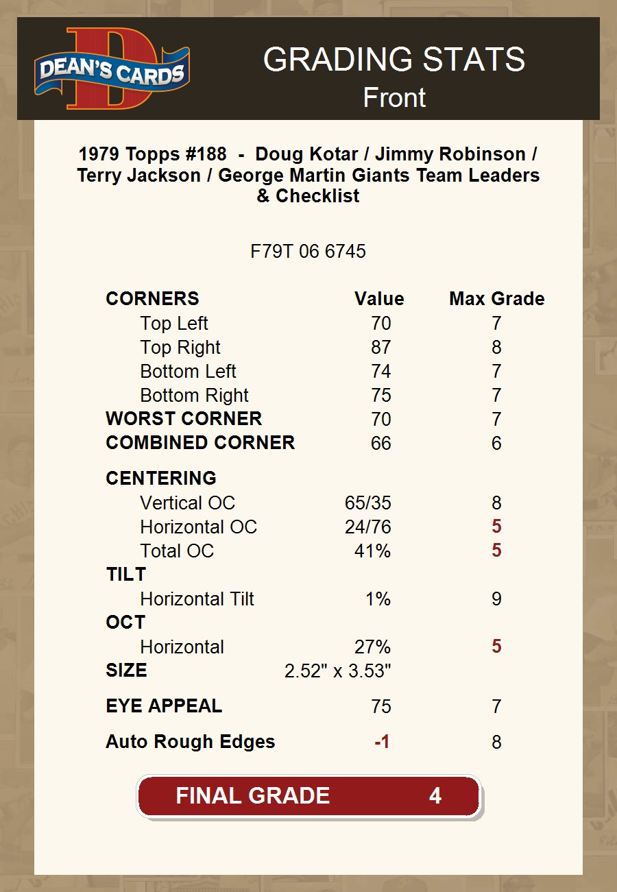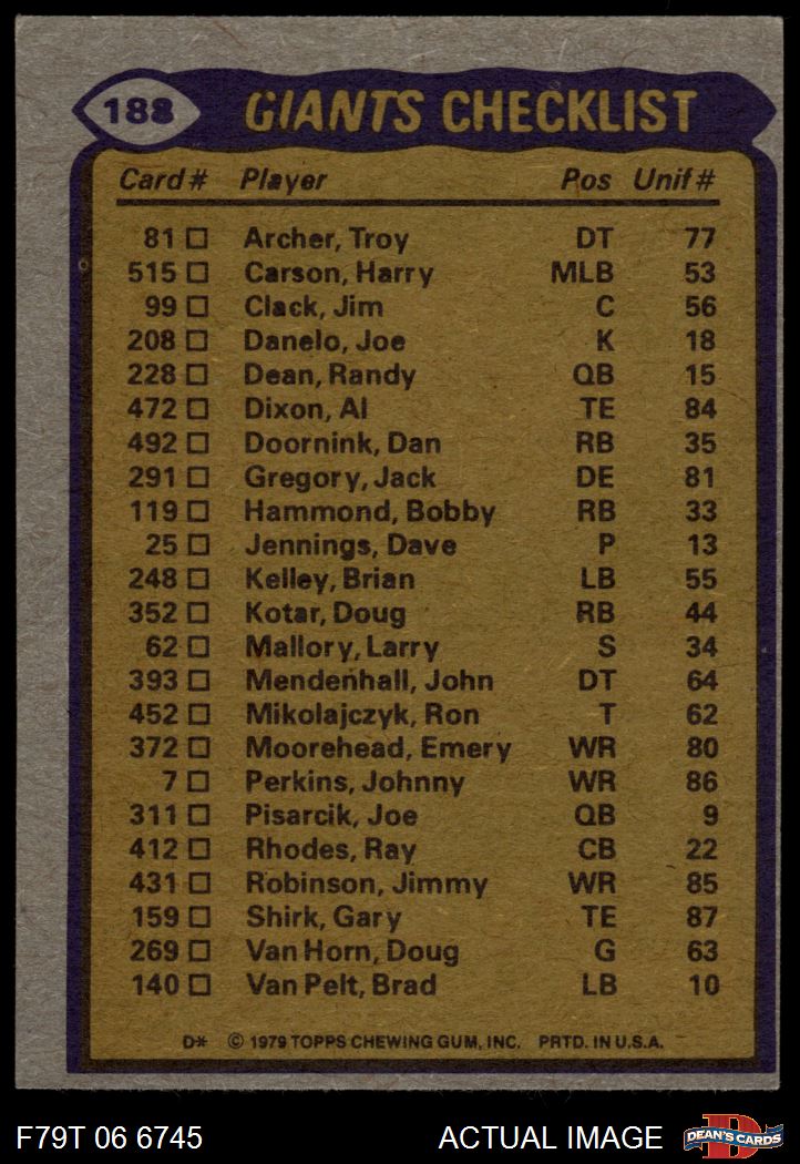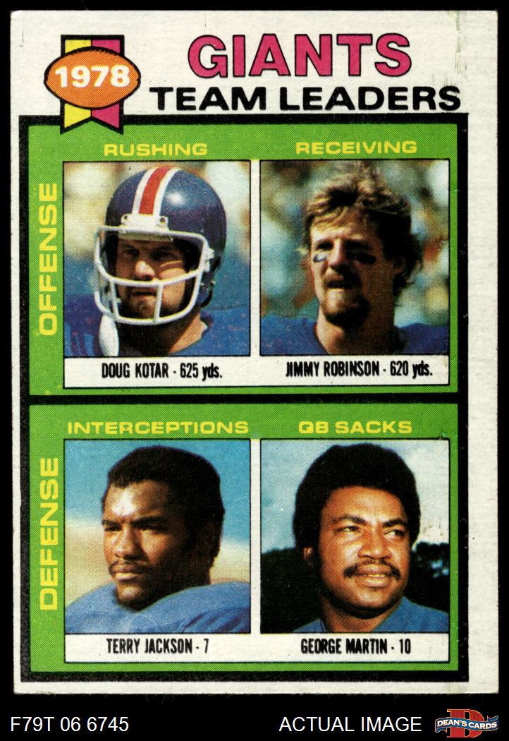 1979 Topps #188 - Doug Kotar / Jimmy Robinson / Terry Jackson / George Martin Giants Team Leaders & Checklist 4 - VG/EX