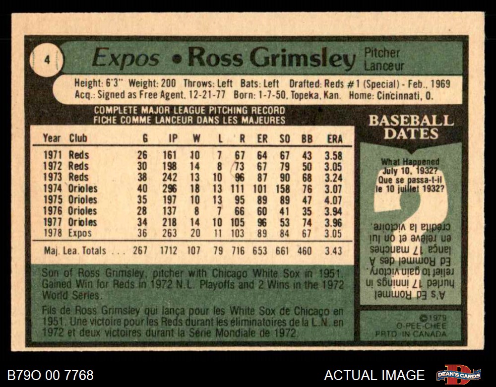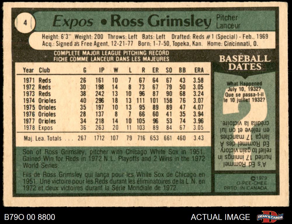 1979 O-Pee-Chee #4 Ross Grimsley 5 - EX