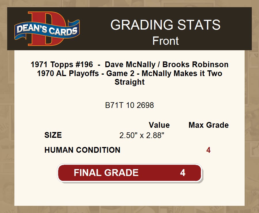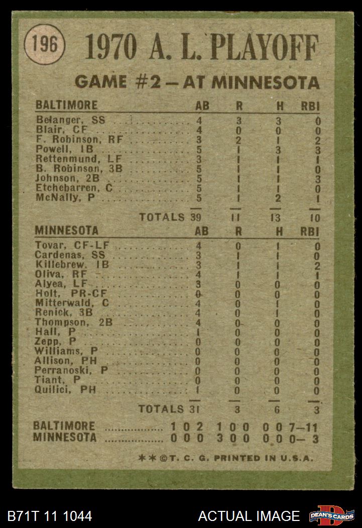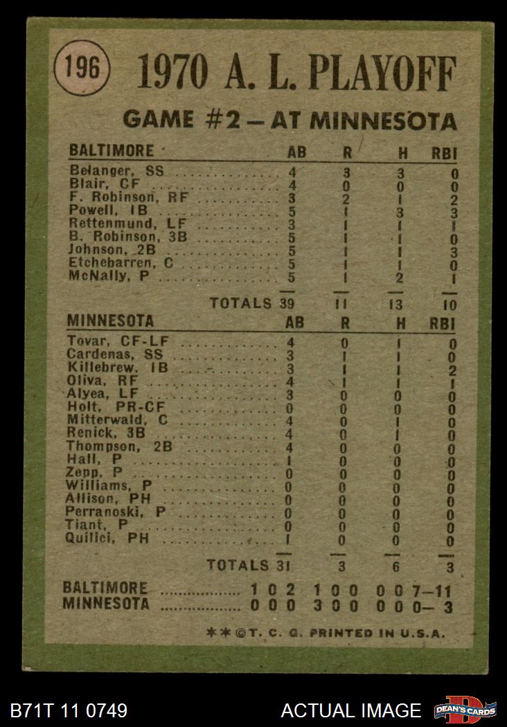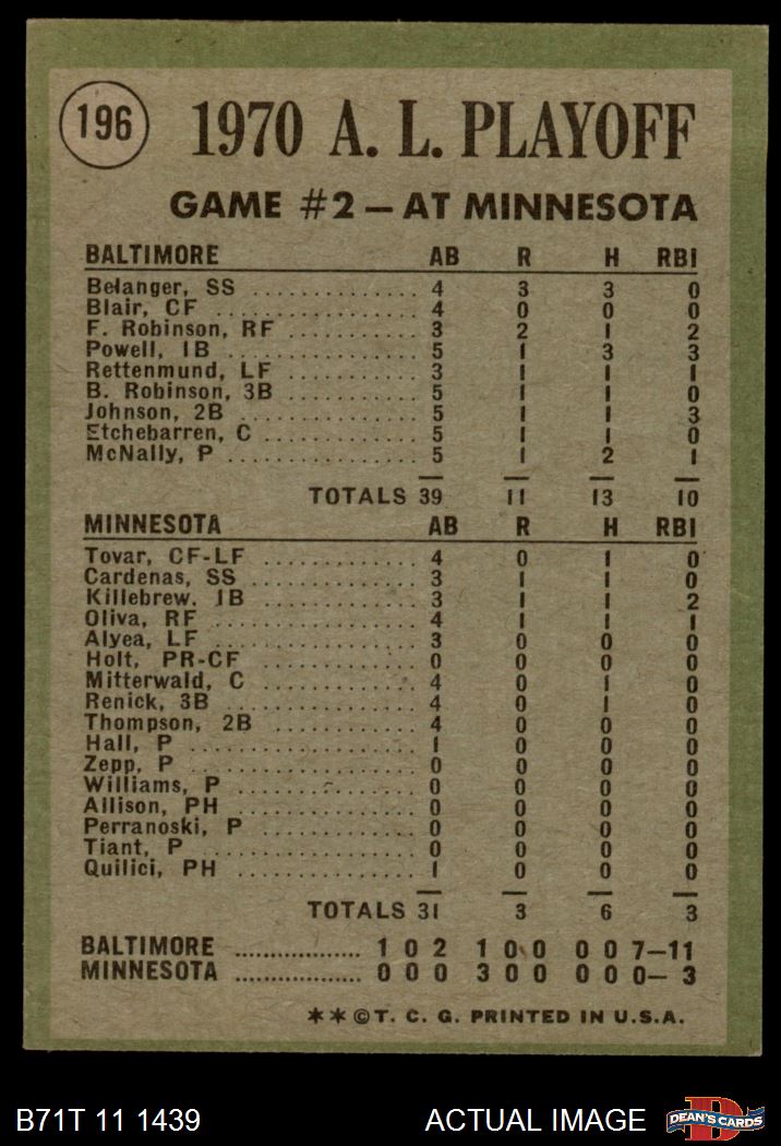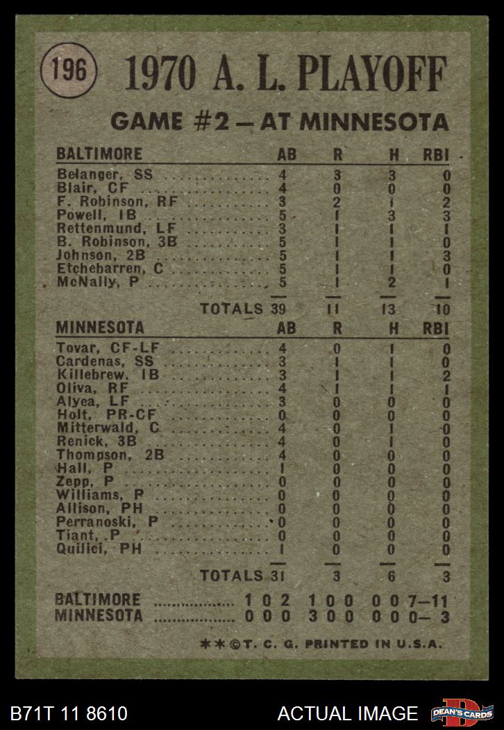 1971 Topps #196 1970 AL Playoffs - Game 2 - McNally Makes it Two Straight