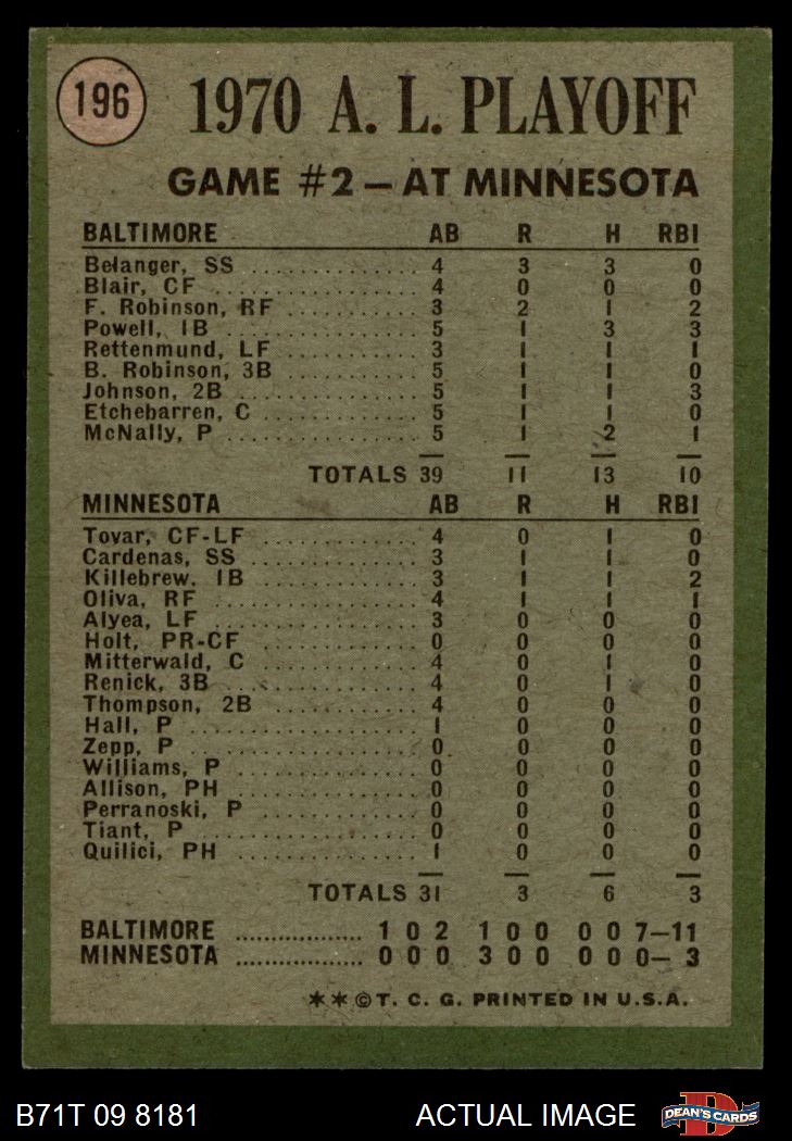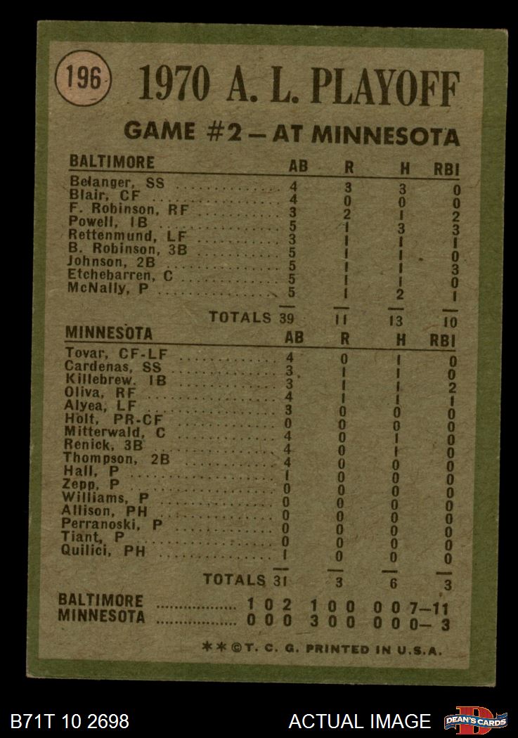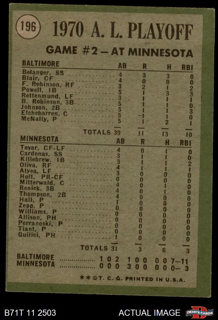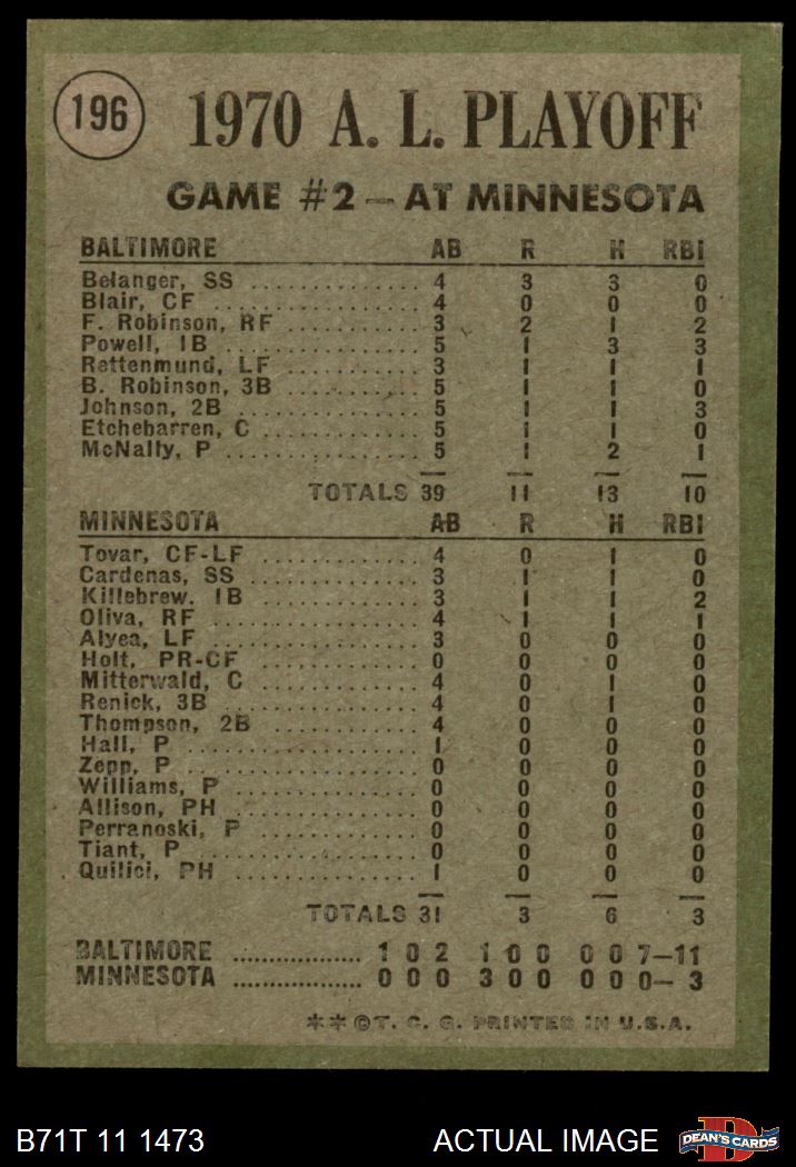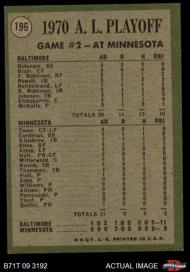 1971 Topps Baseball Cards (11,387 available)1971 Topps Orioles / Twins (115 available)