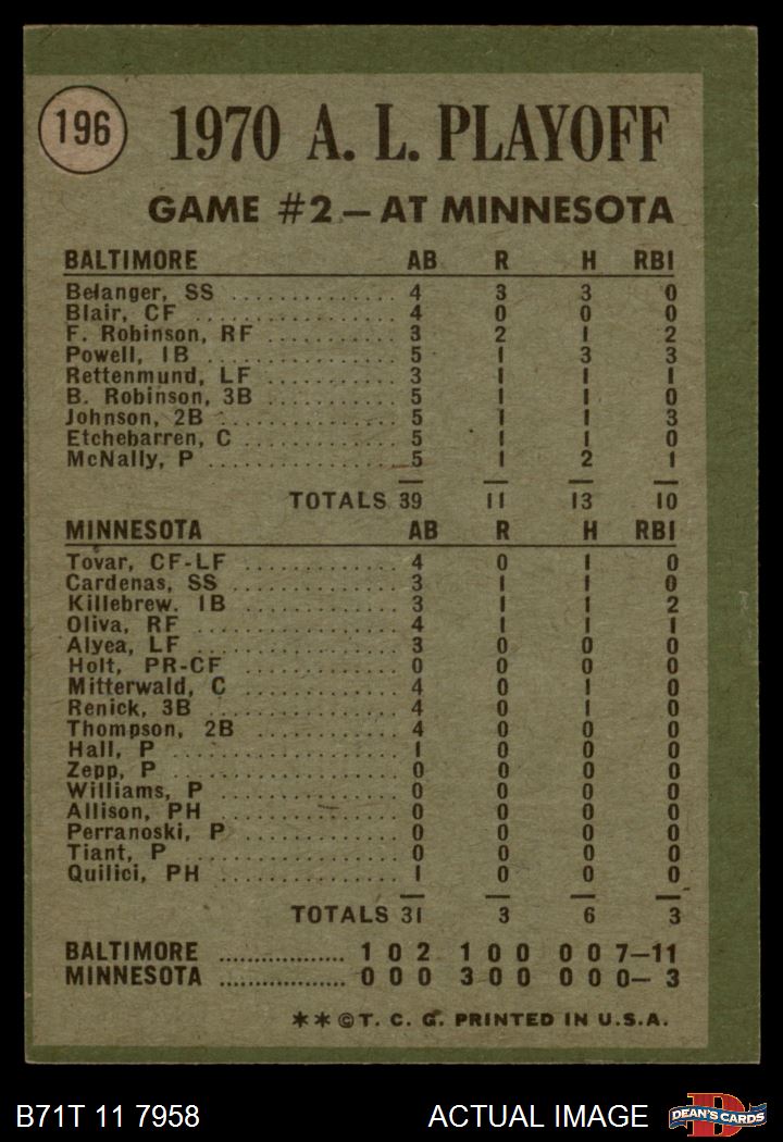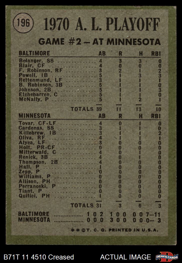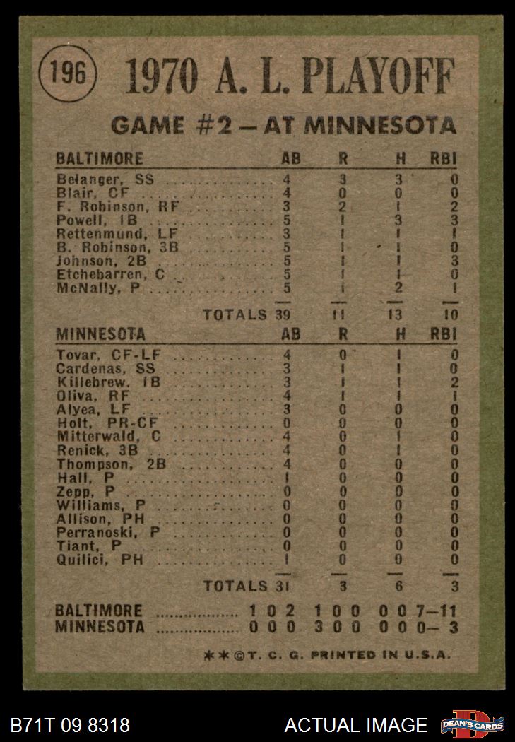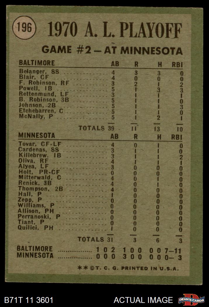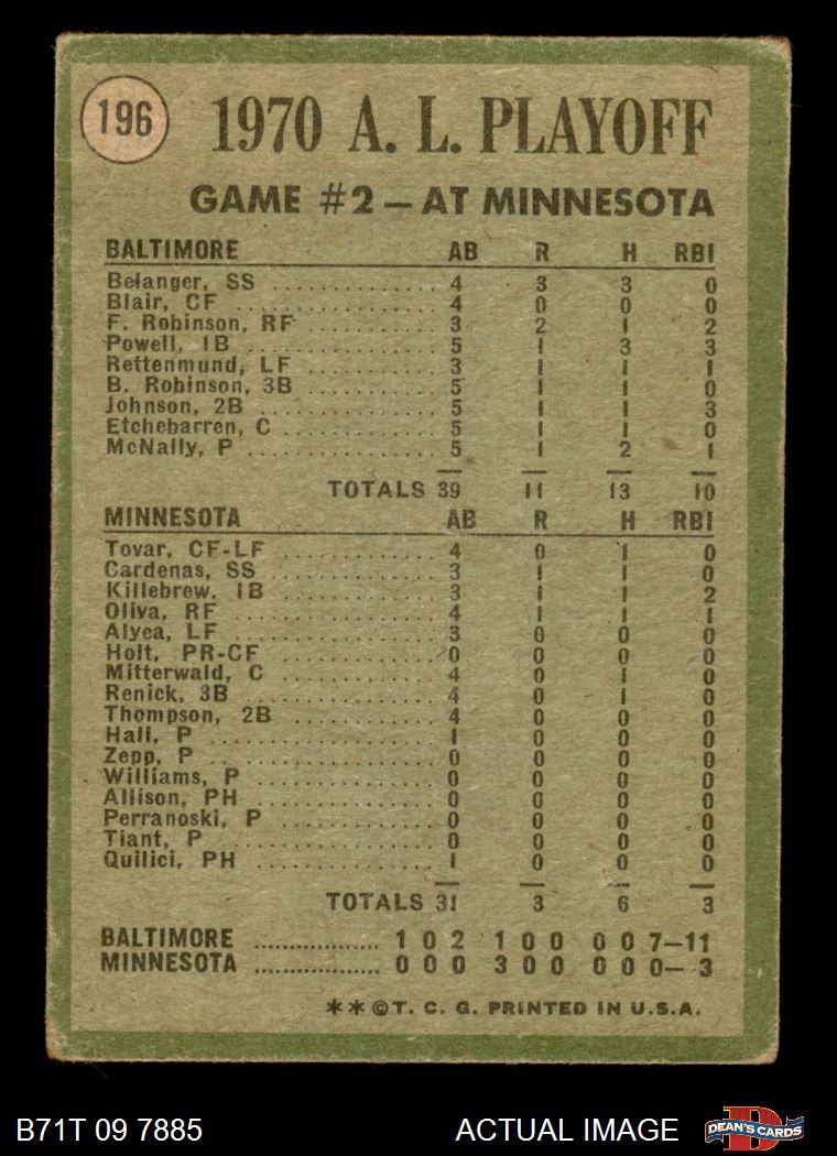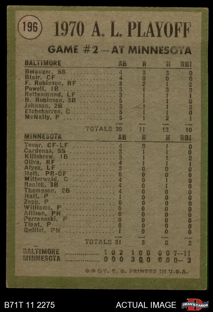 1971 Topps Baseball Cards (11,387 available)1971 Topps Orioles / Twins (115 available)