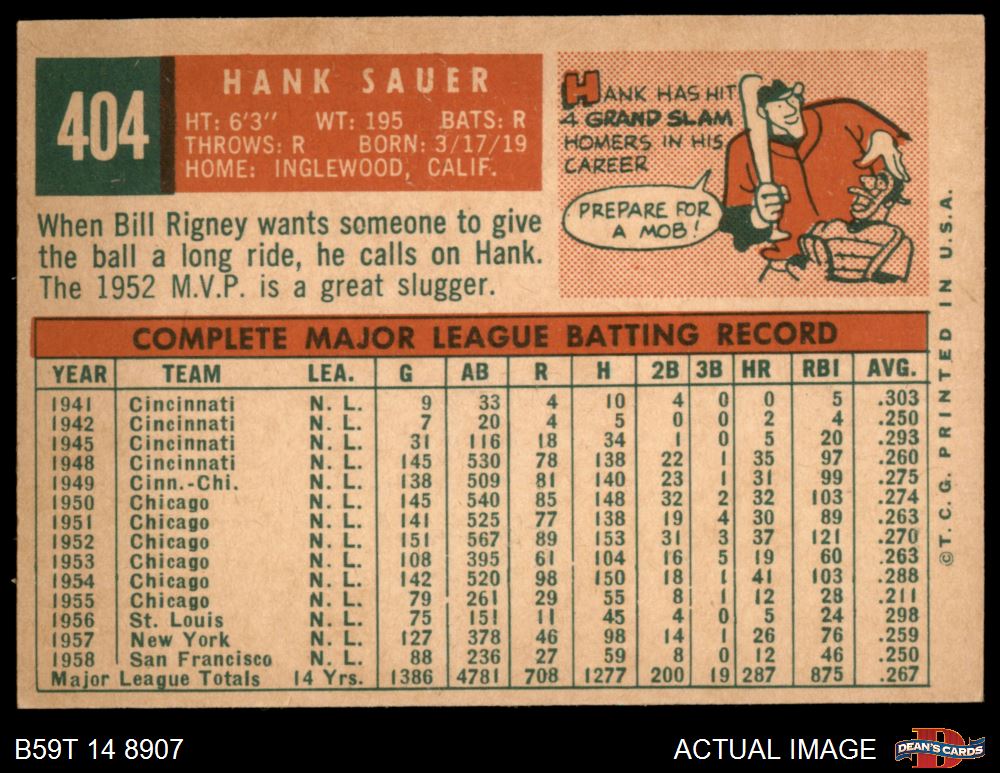 1959 Topps #404 Hank Sauer 4 - VG/EX