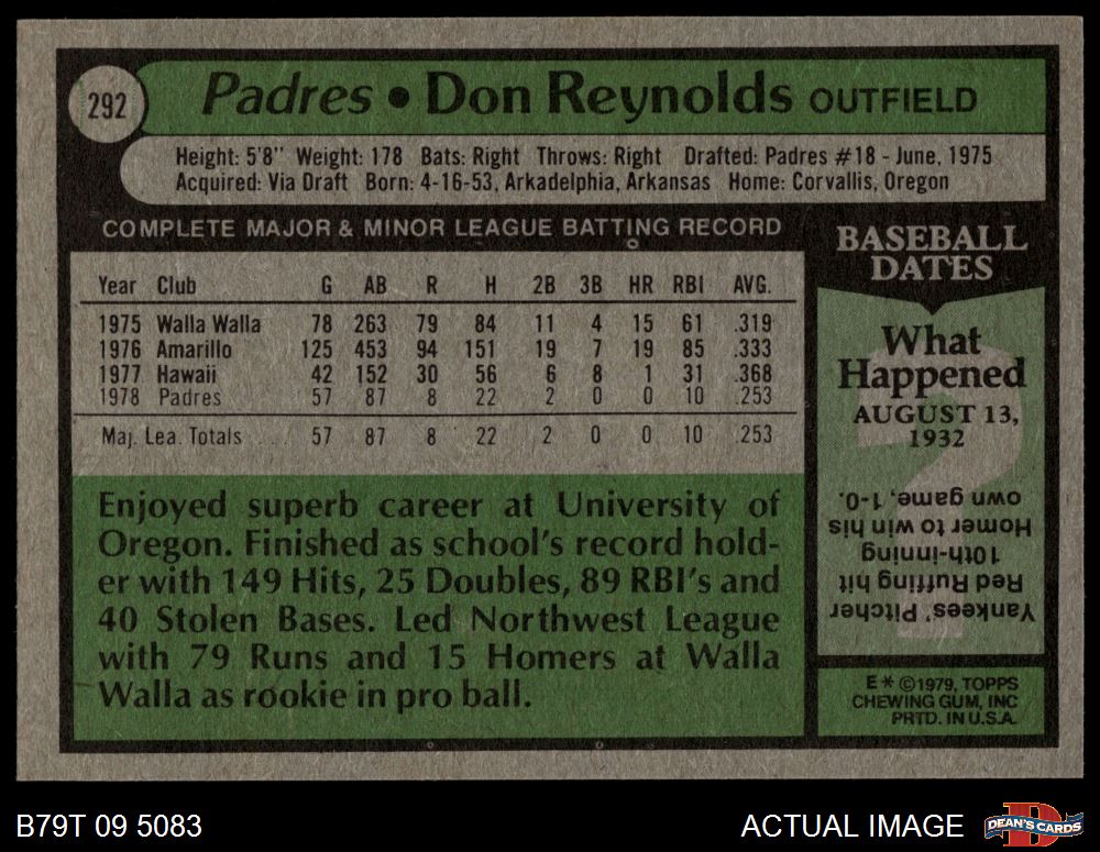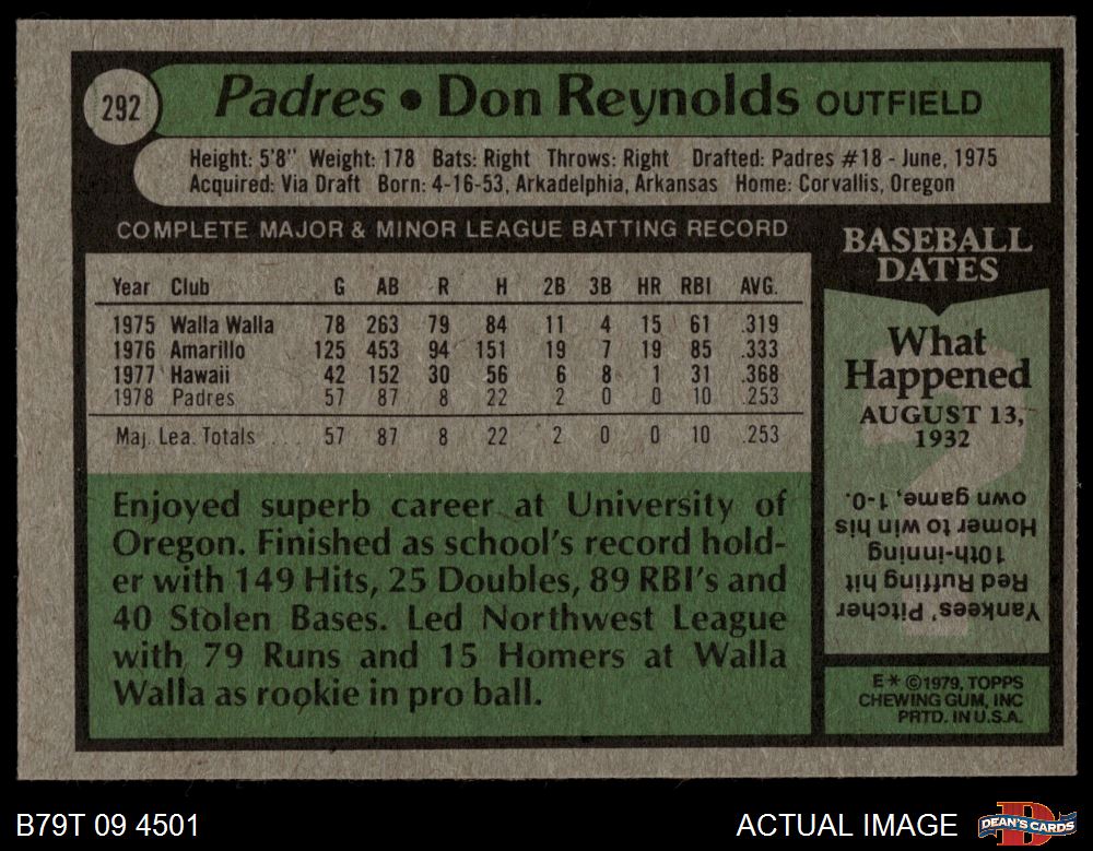 1979 Topps #292 Don Reynolds
