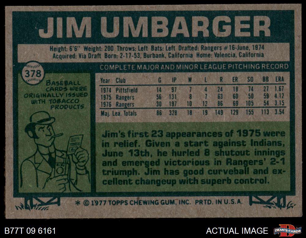 1977 Topps #378 Jim Umbarger 4 - VG/EX
