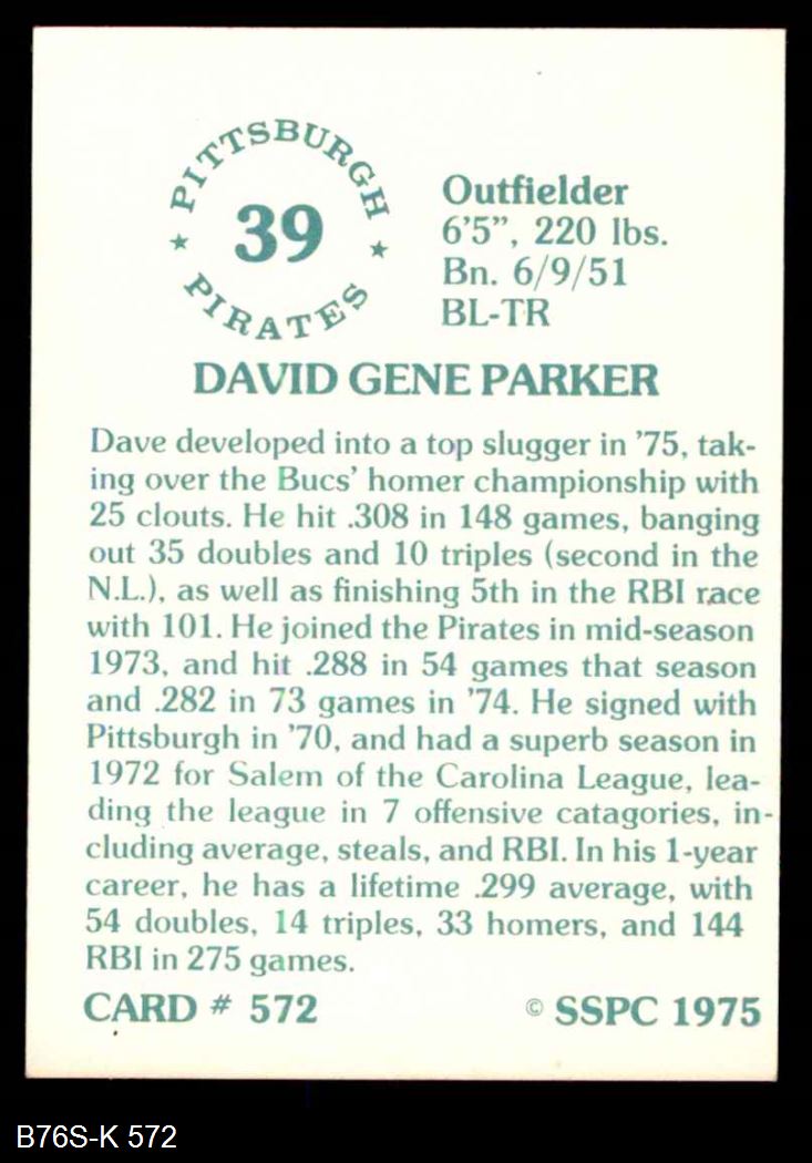 1975 SSPC #572 Dave Parker