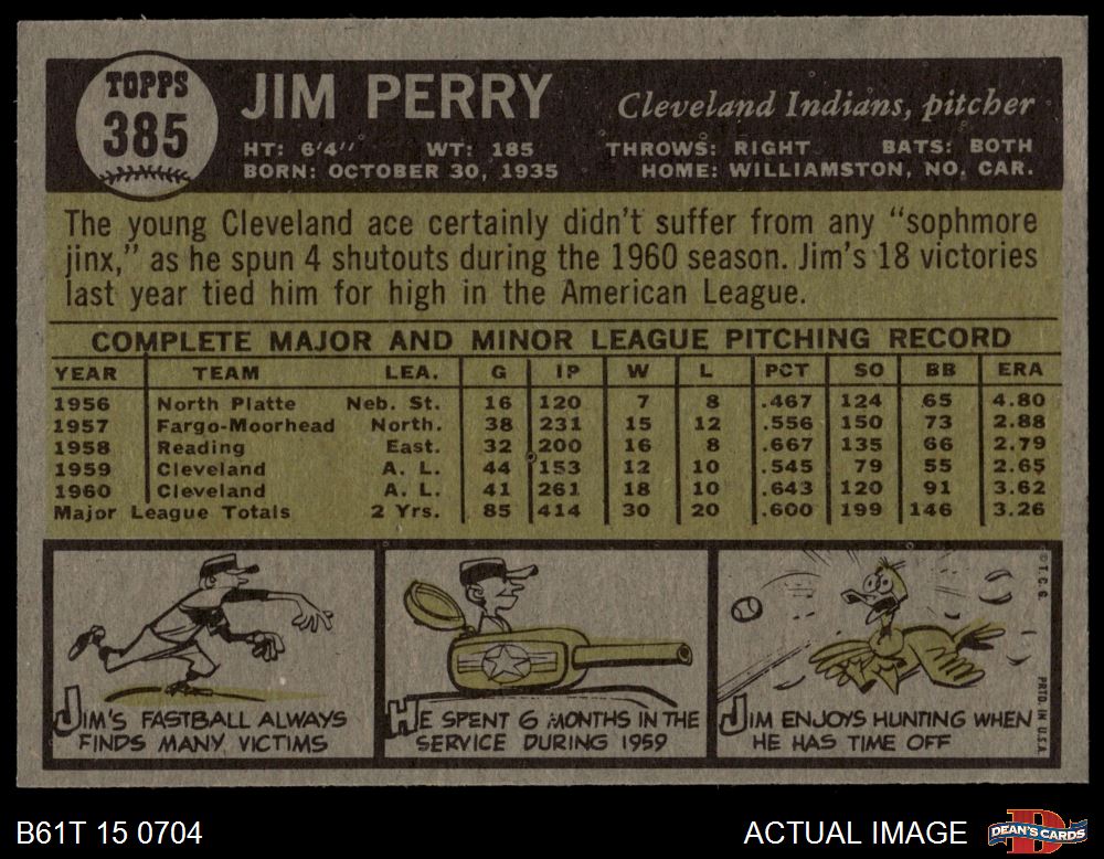 1961 Topps #385 Jim Perry 6 - EX/MT