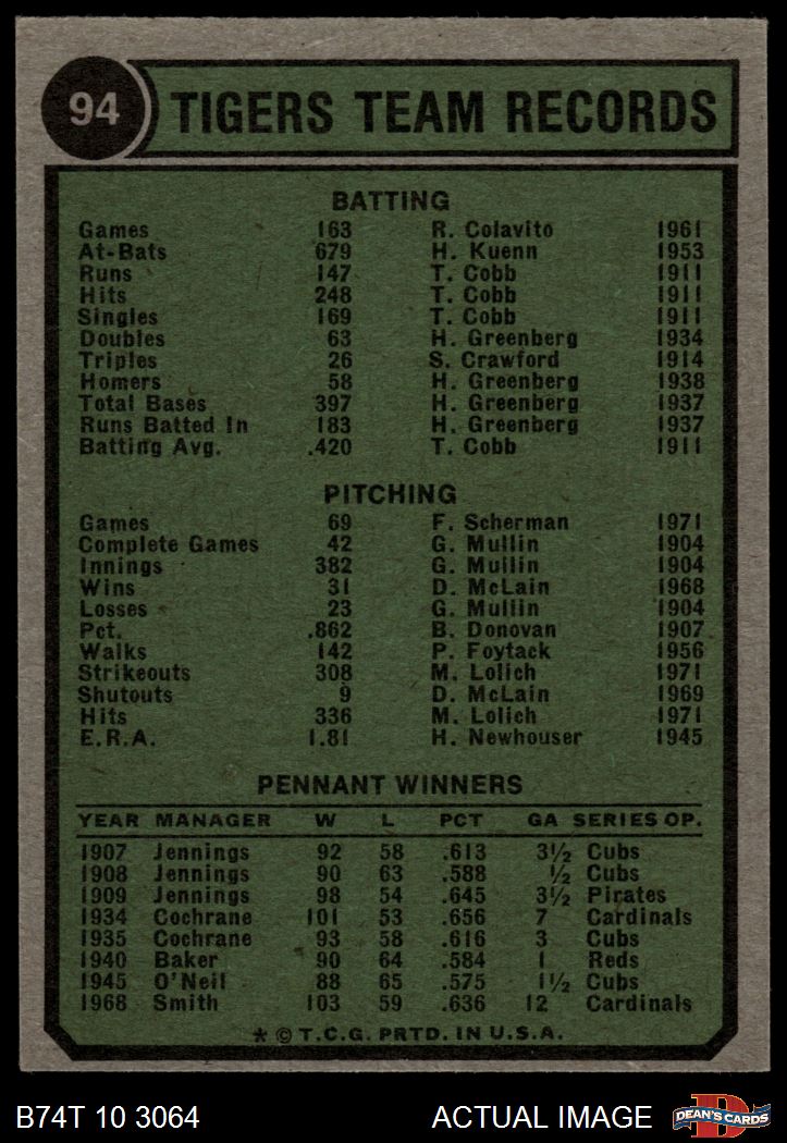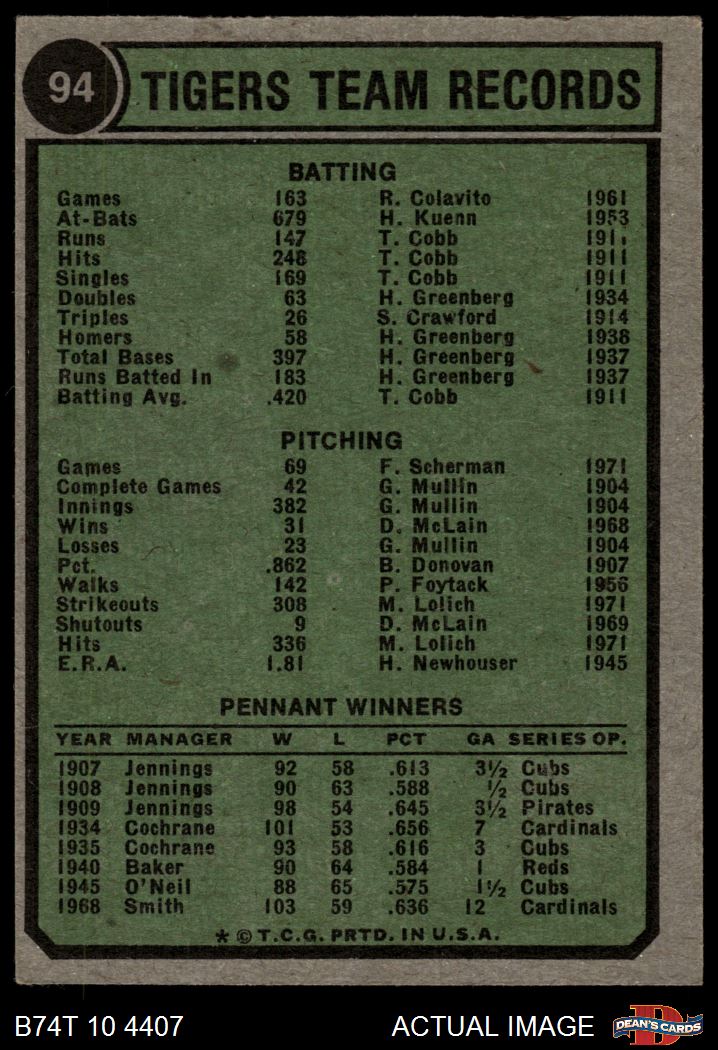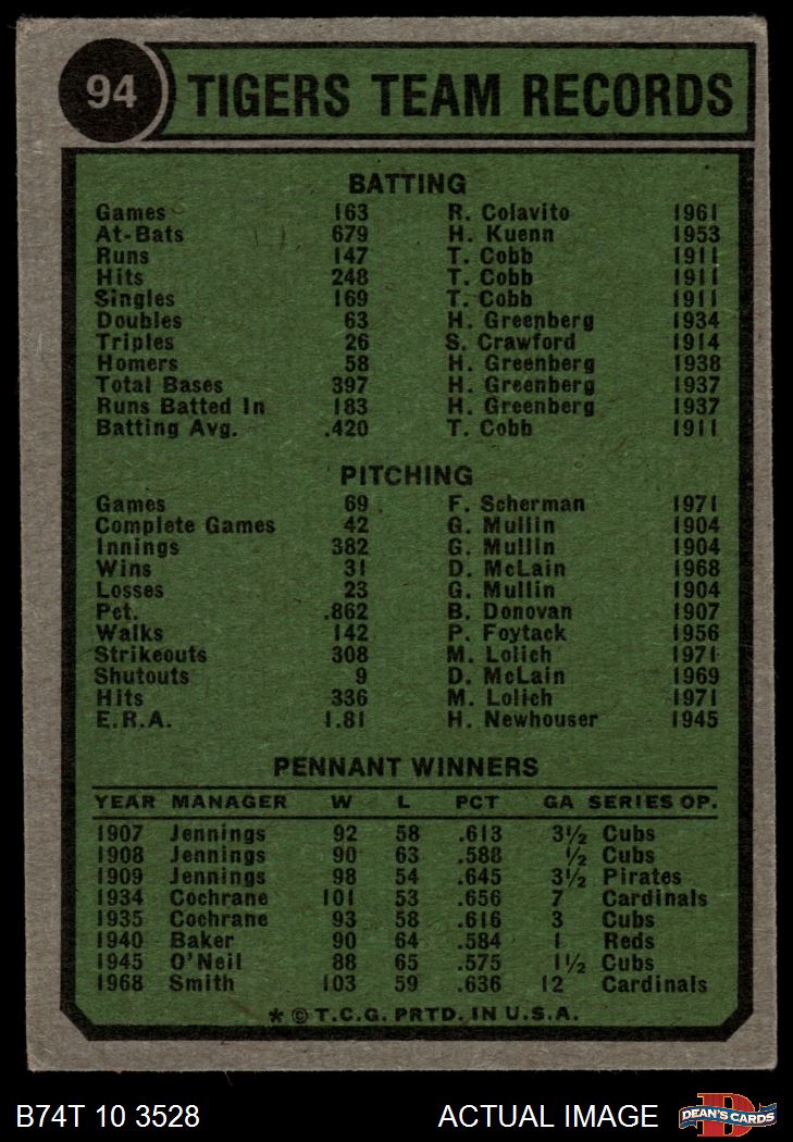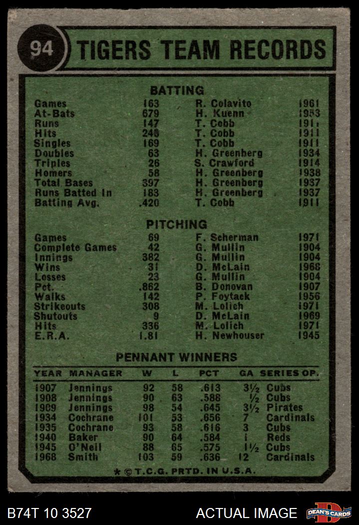 1974 Topps #94 Tigers Team