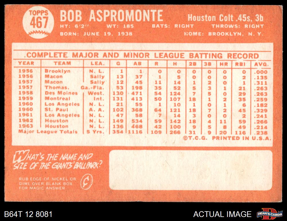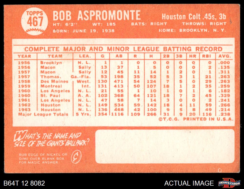 1964 Topps #467 Bob Aspromonte 4 - VG/EX