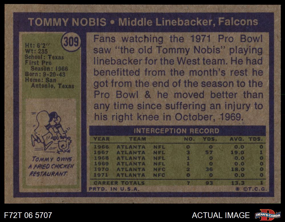 1972 Topps #309 Tommy Nobis 8 - NM/MT