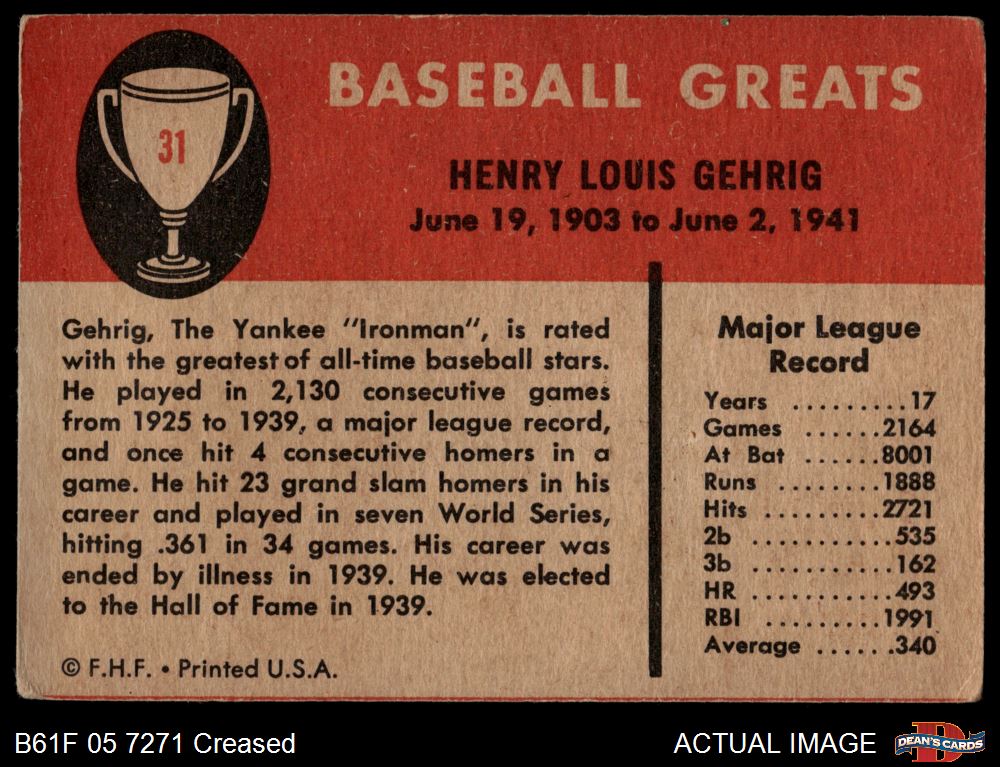 1961 Fleer #31 Lou Gehrig 2.5 - GD+