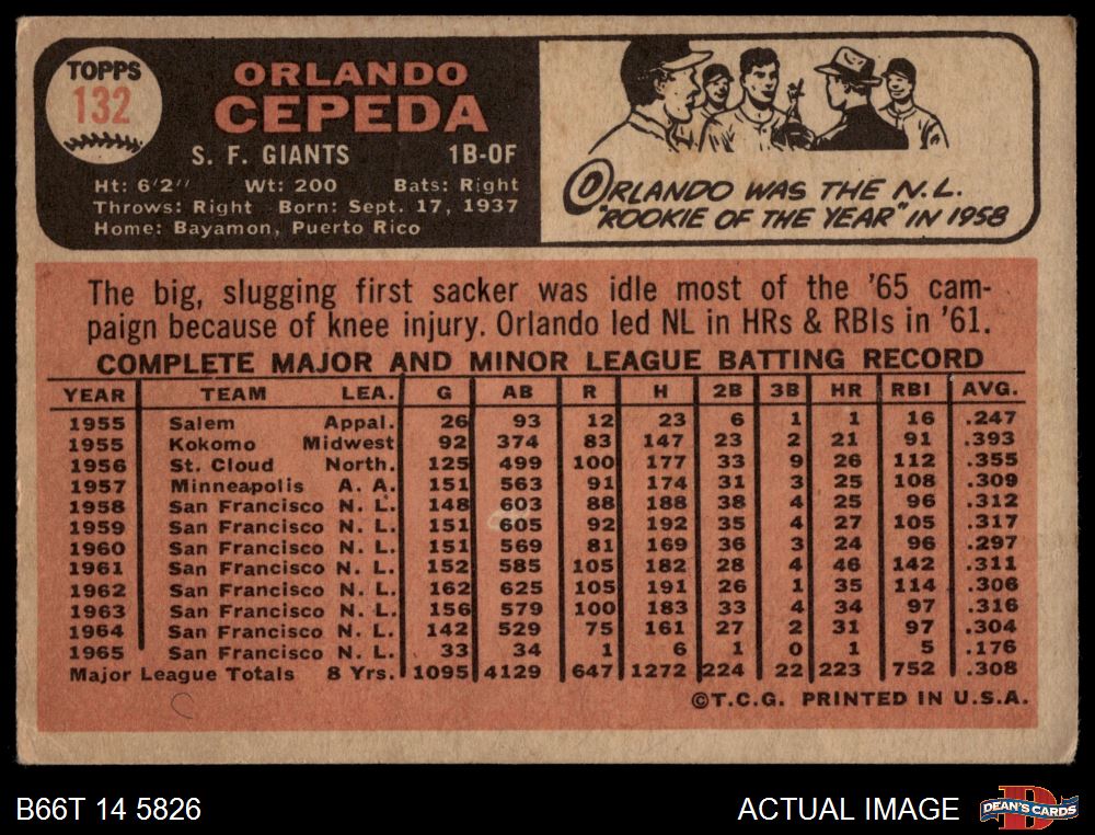 1966 Topps #132 Orlando Cepeda 1 - POOR