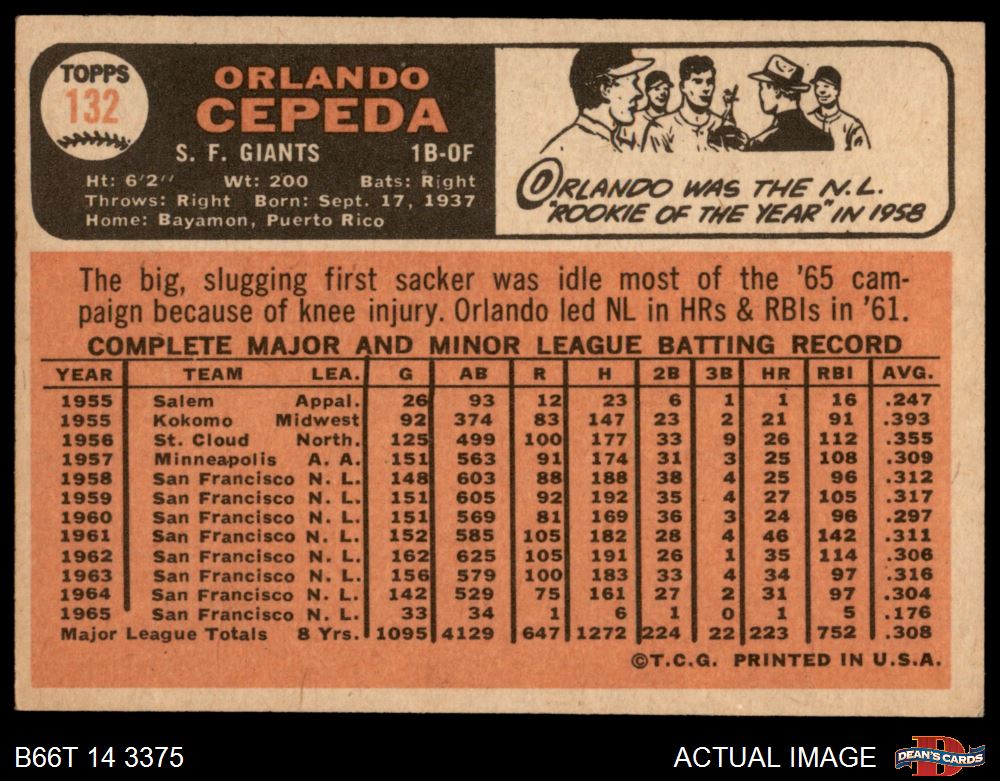 1966 Topps #132 Orlando Cepeda 5 - EX