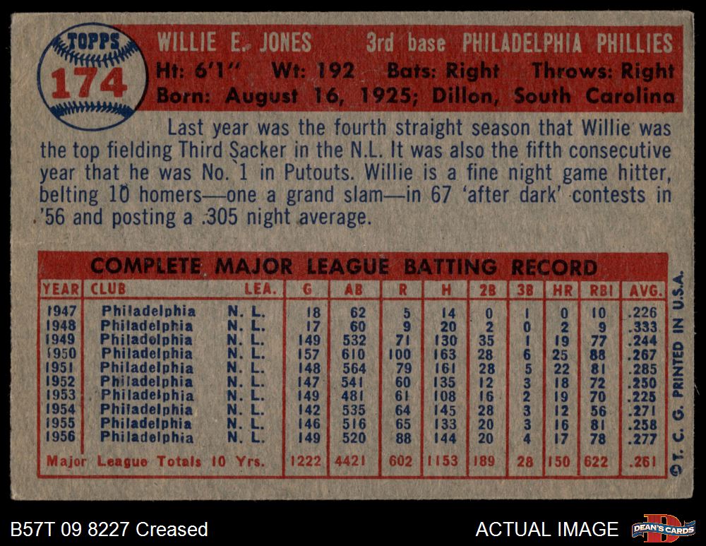 1957 Topps #174 Willie Jones 2 - GOOD