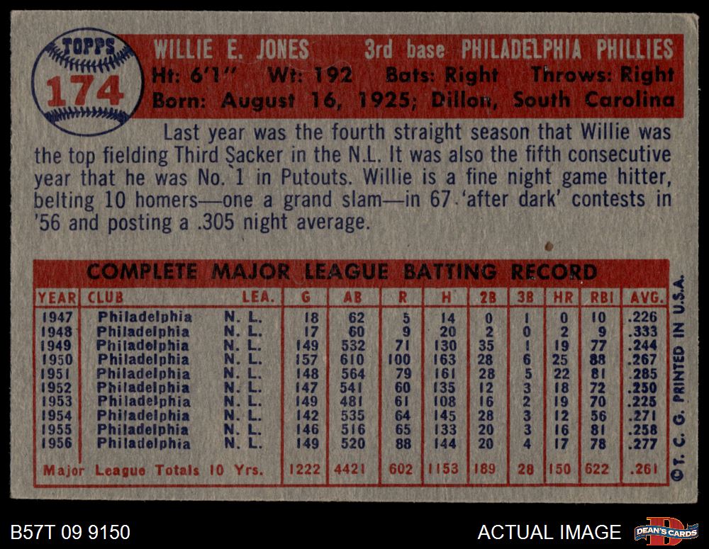 1957 Topps #174 Willie Jones 3.5 - VG+