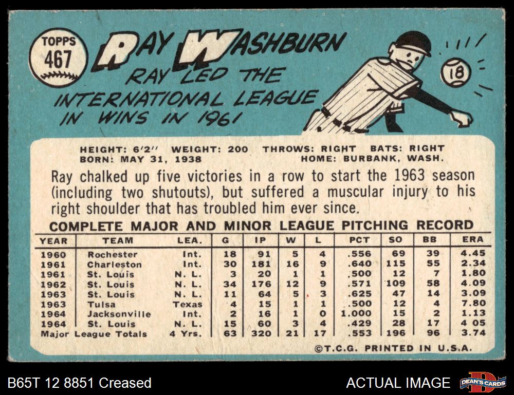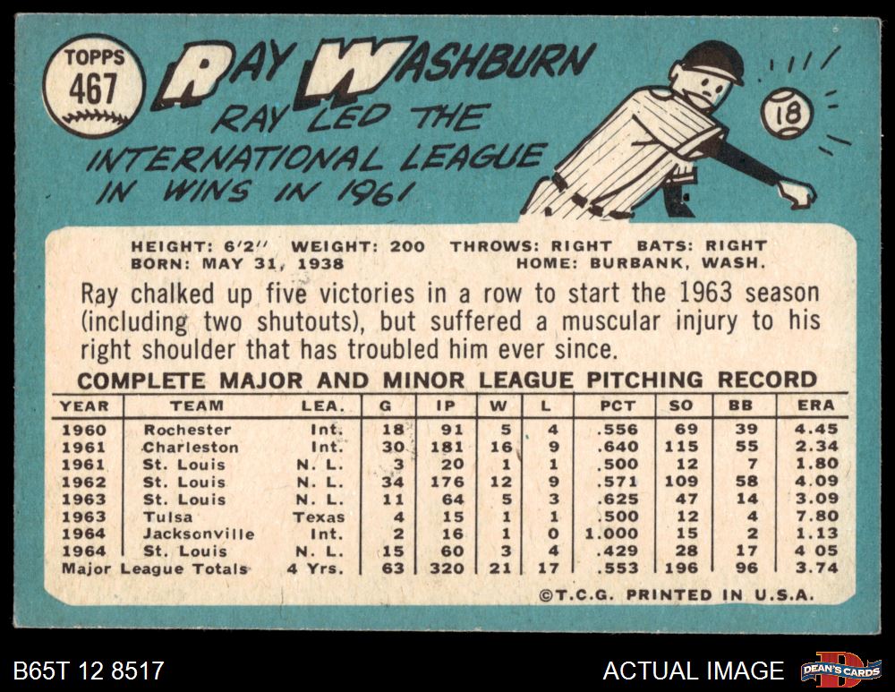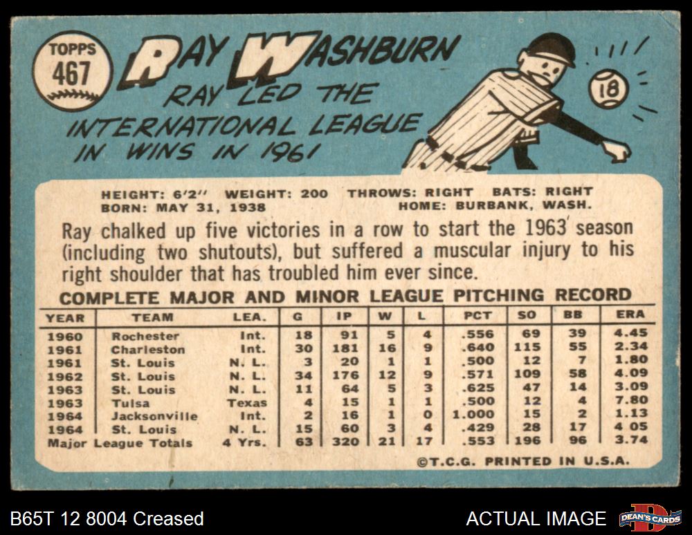 1965 Topps #467 Ray Washburn 2 - GOOD