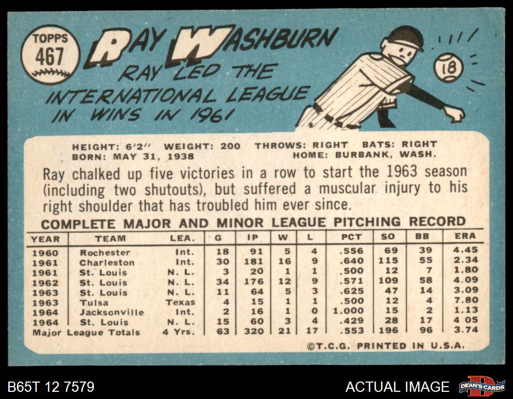 1965 Topps #467 Ray Washburn 2.5 - GD+
