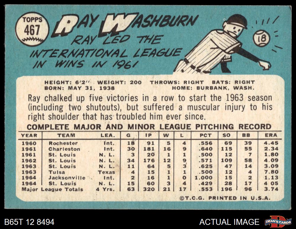 1965 Topps #467 Ray Washburn 4 - VG/EX