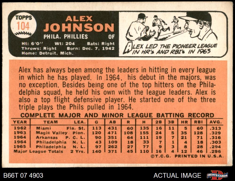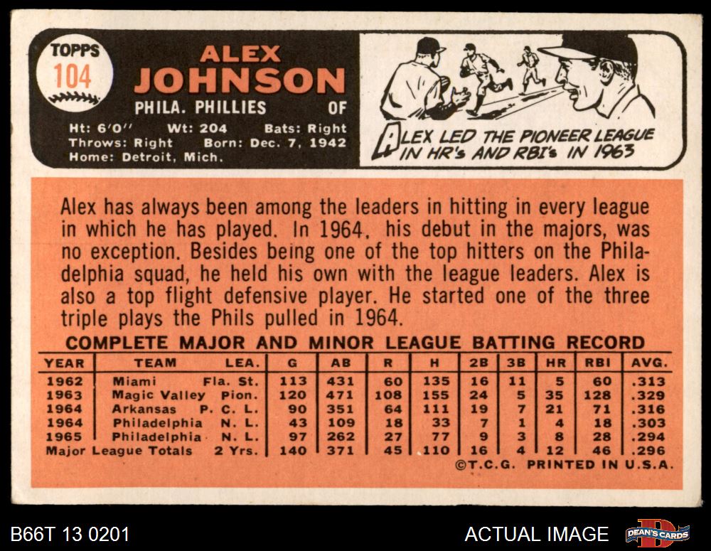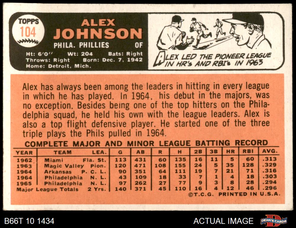 1966 Topps #104 xTR Alex Johnson 3 - VG
