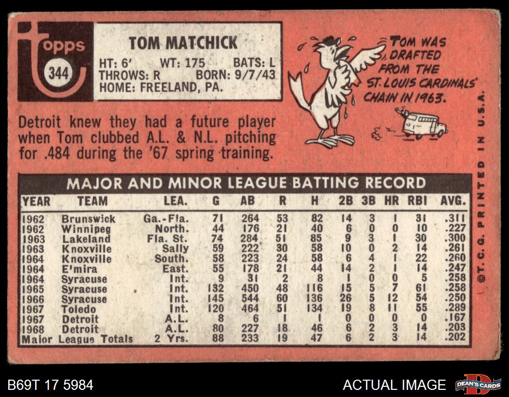 1969 Topps #344 Tom Matchick 2 - GOOD