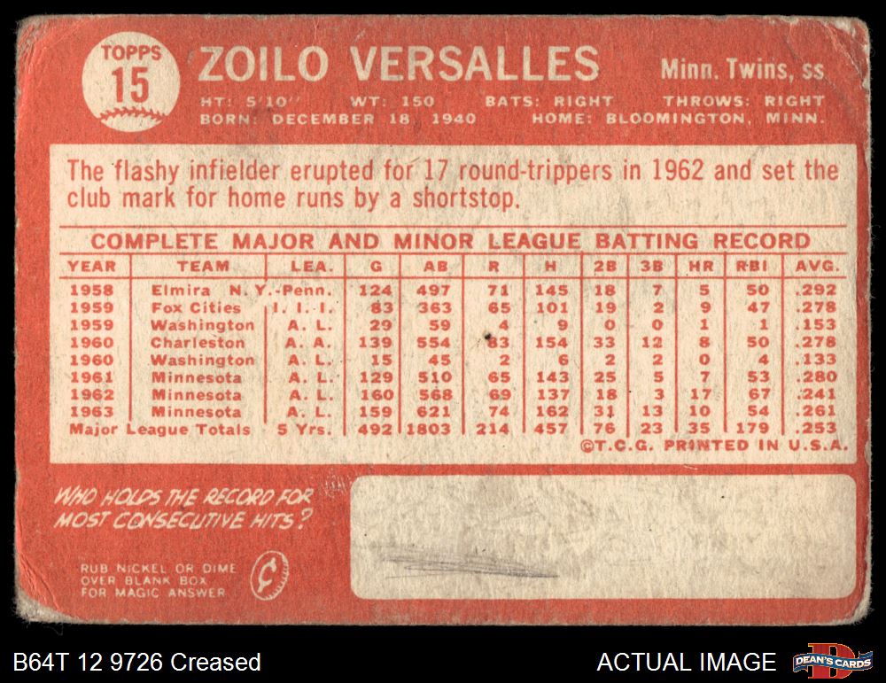 1964 Topps #15 Zoilo Versalles 1 - POOR