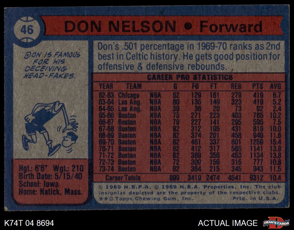 1974 Topps #46 Don Nelson 5 - EX