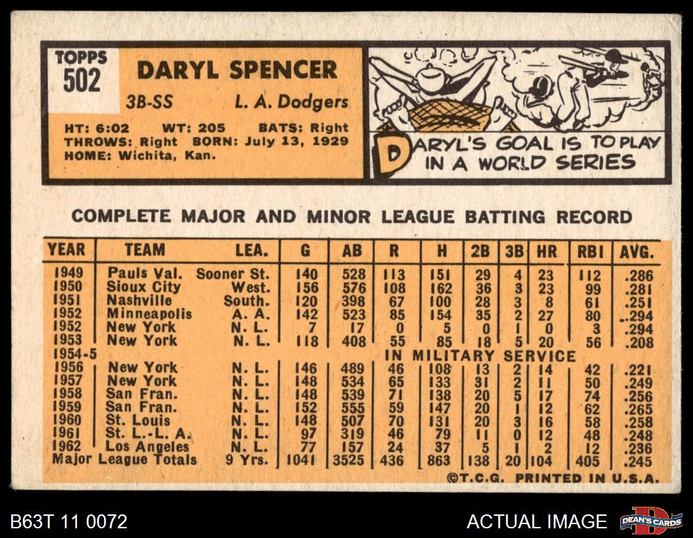 1963 Topps #502 Daryl Spencer 3 - VG