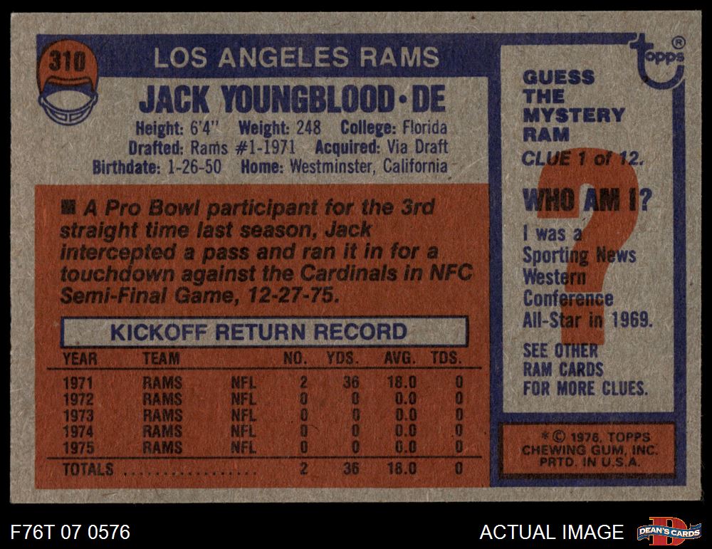 1976 Topps #310 Jack Youngblood 5 - EX