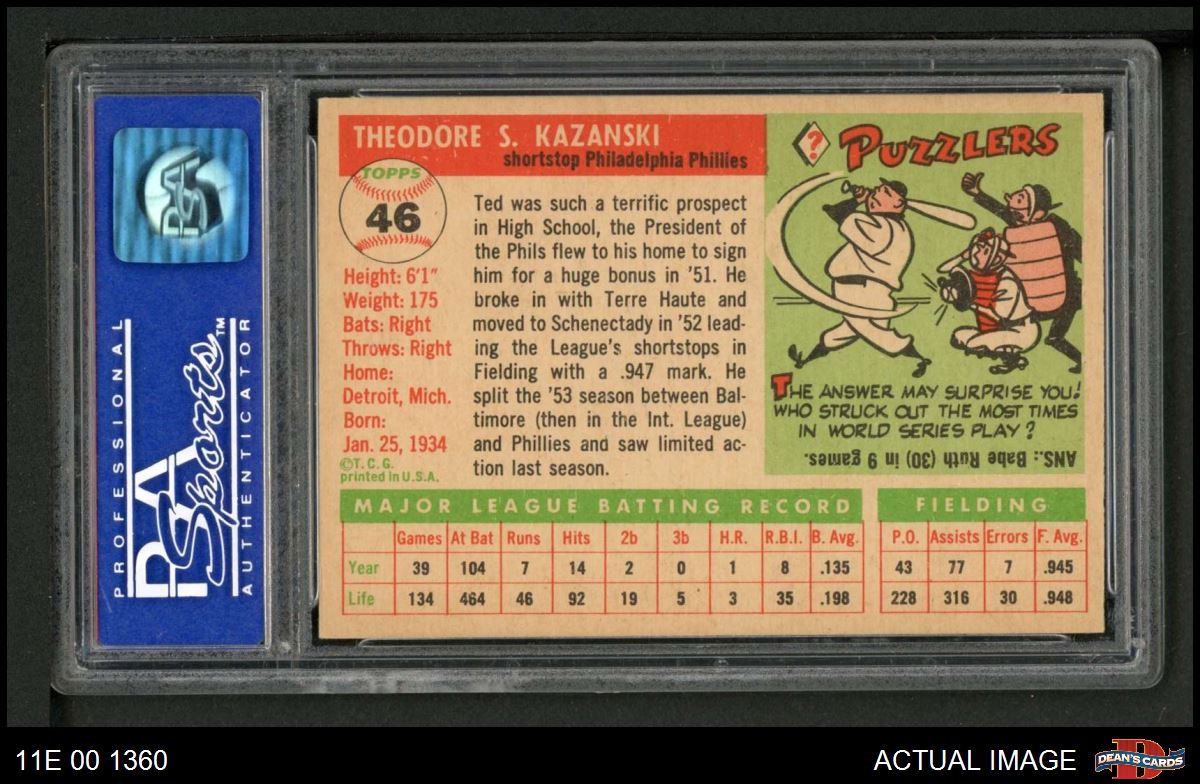 1955 Topps #46 Ted Kazanski PSA 8 - NM/MT