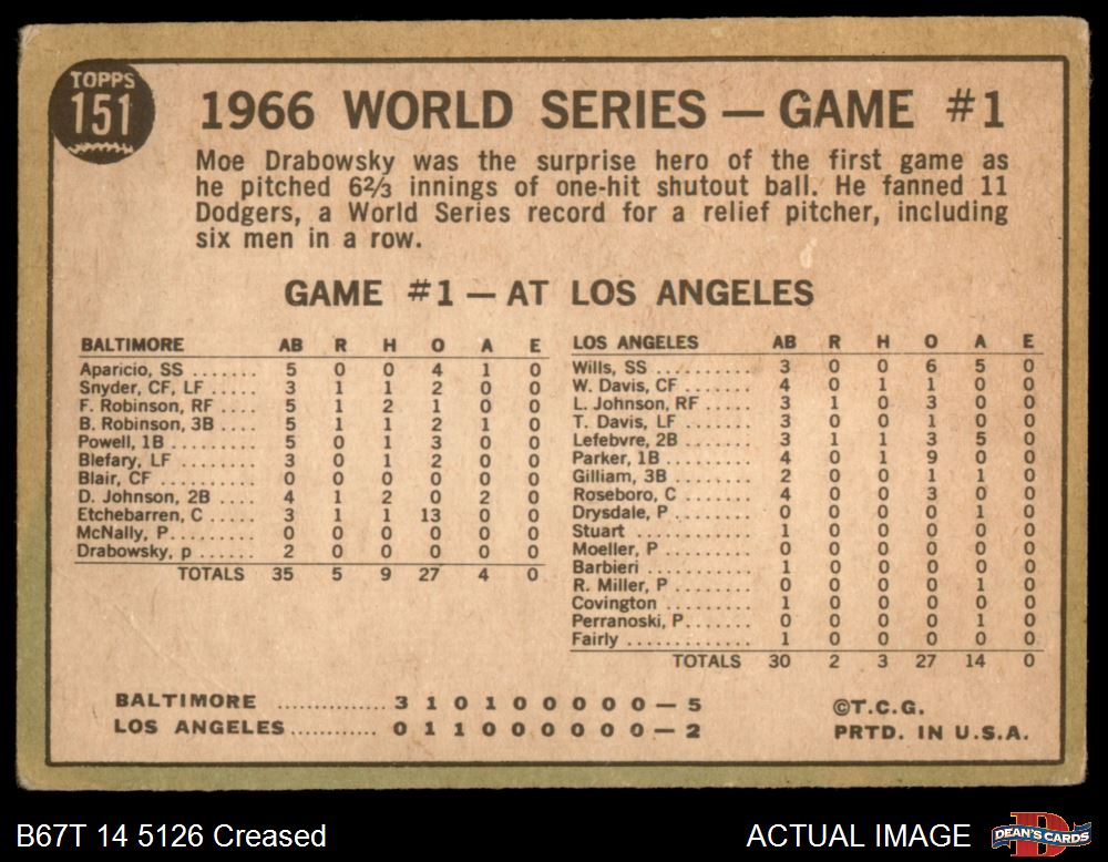 1967 Topps #151 - Moe Drabowsky 1966 World Series - Game #1 - Moe Mows Down 11 1 - POOR