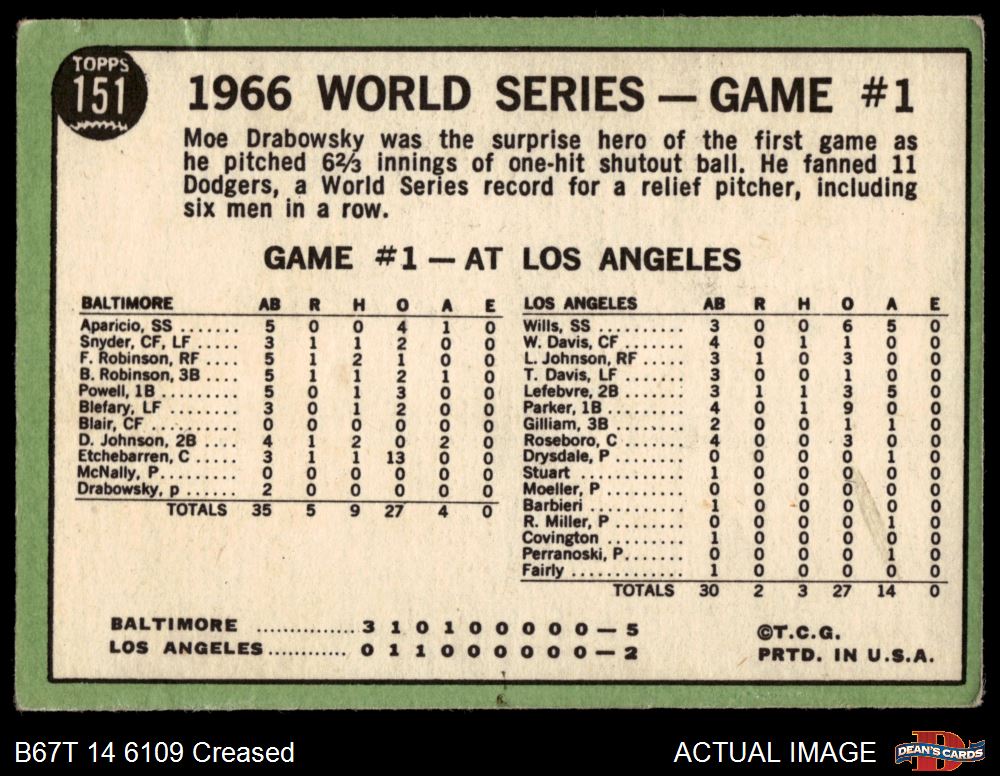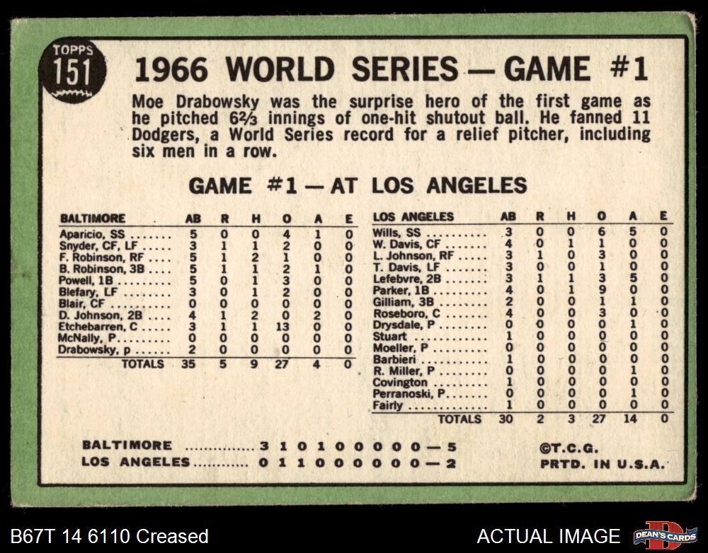 1967 Topps #151 - Moe Drabowsky 1966 World Series - Game #1 - Moe Mows Down 11 2 - GOOD