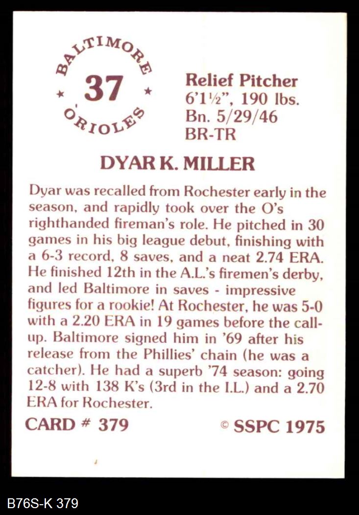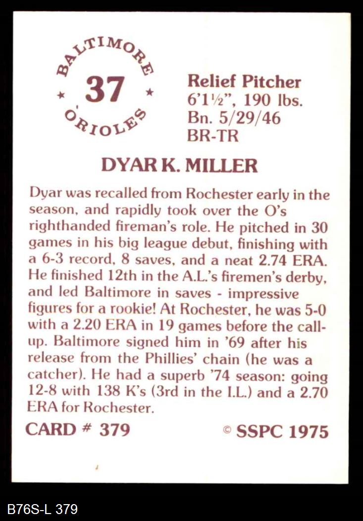 1975 SSPC #379 Dyar Miller 8 - NM/MT