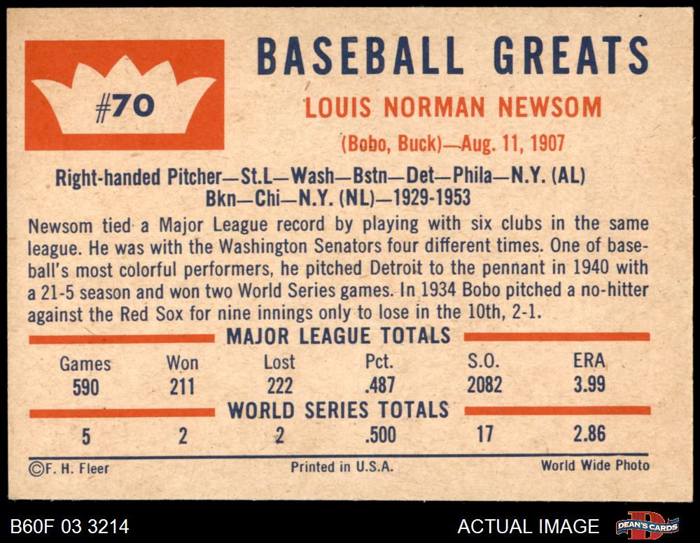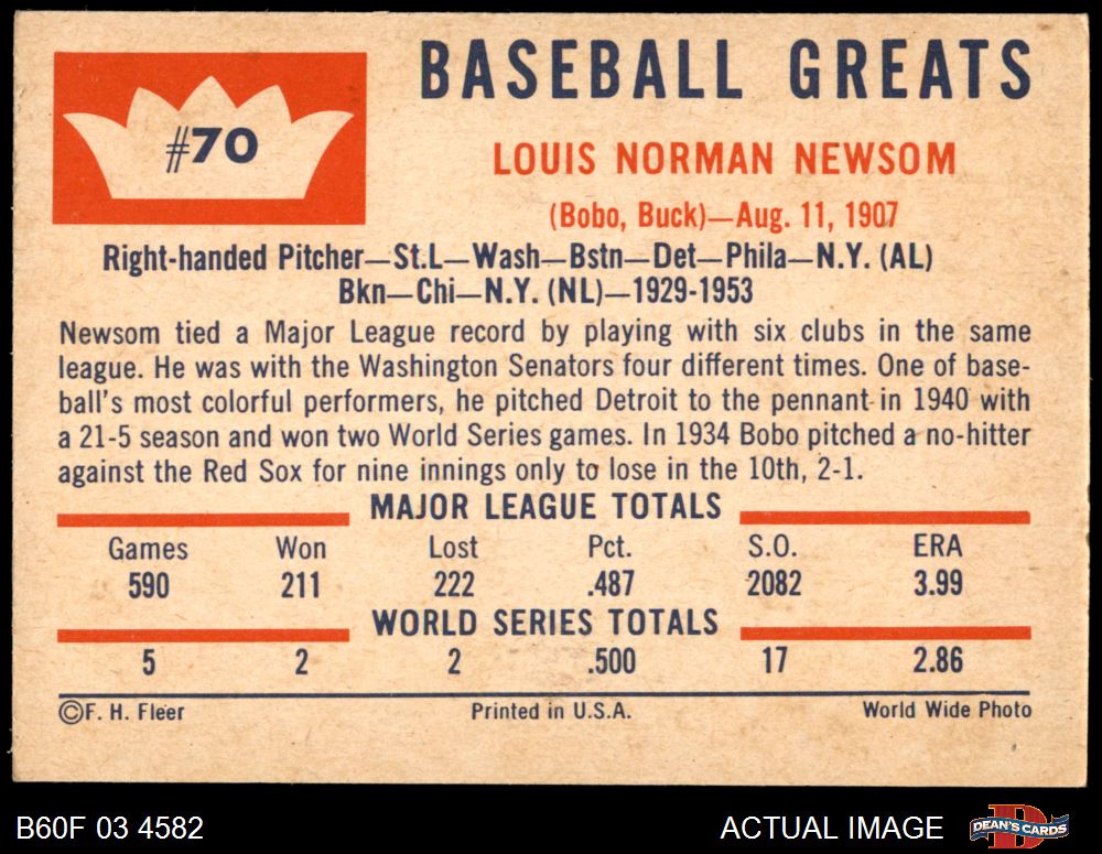 1960 Fleer #70 Bobo Newsom 6 - EX/MT