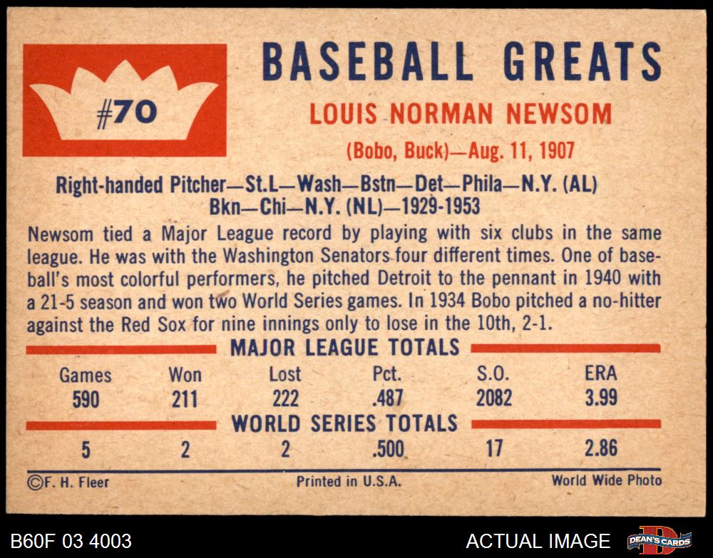 1960 Fleer #70 Bobo Newsom 8 - NM/MT