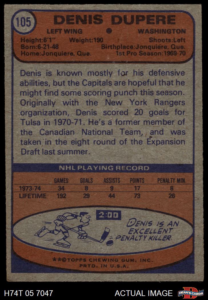 1974 Topps #105 Denis Dupere 4.5 - VG/EX+